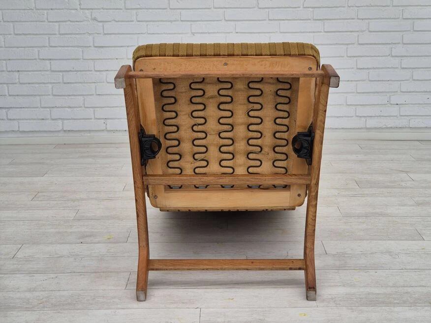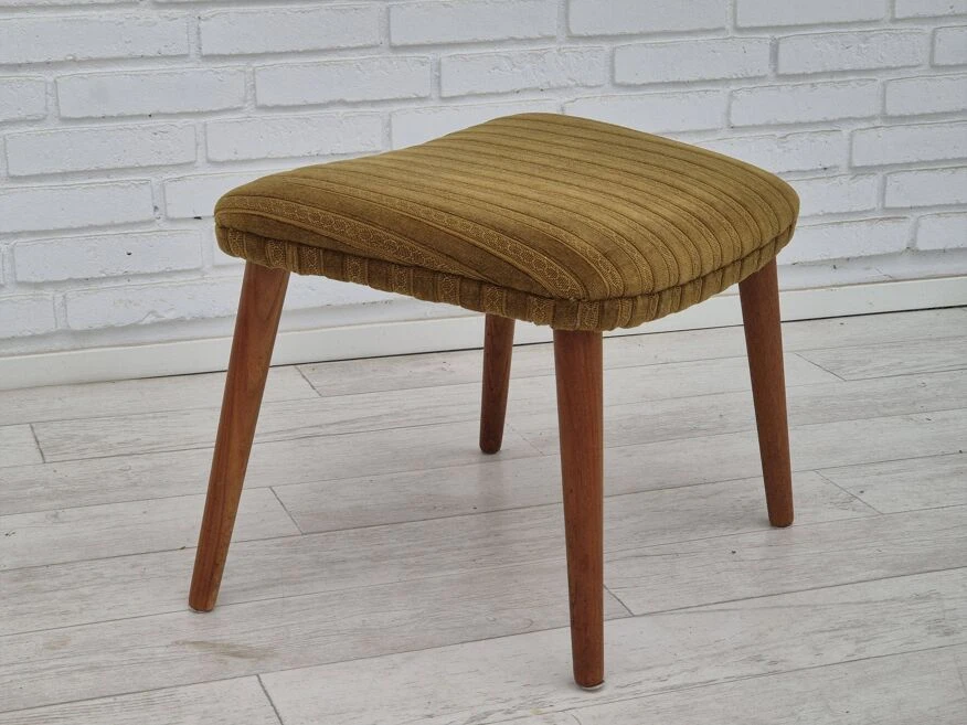 Green cotton-wool furniture fabric, oak wood, teak wood.