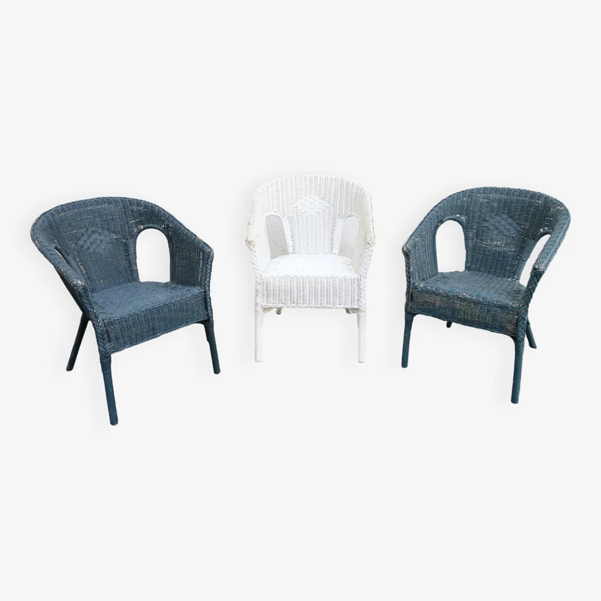 Three vintage rattan armchairs from the 1960s, in very good condition (a very small missing part on the back of one, see photos).