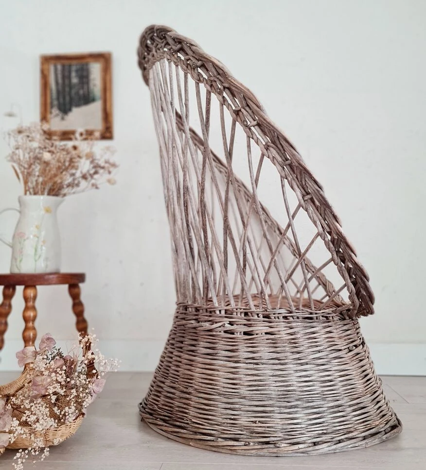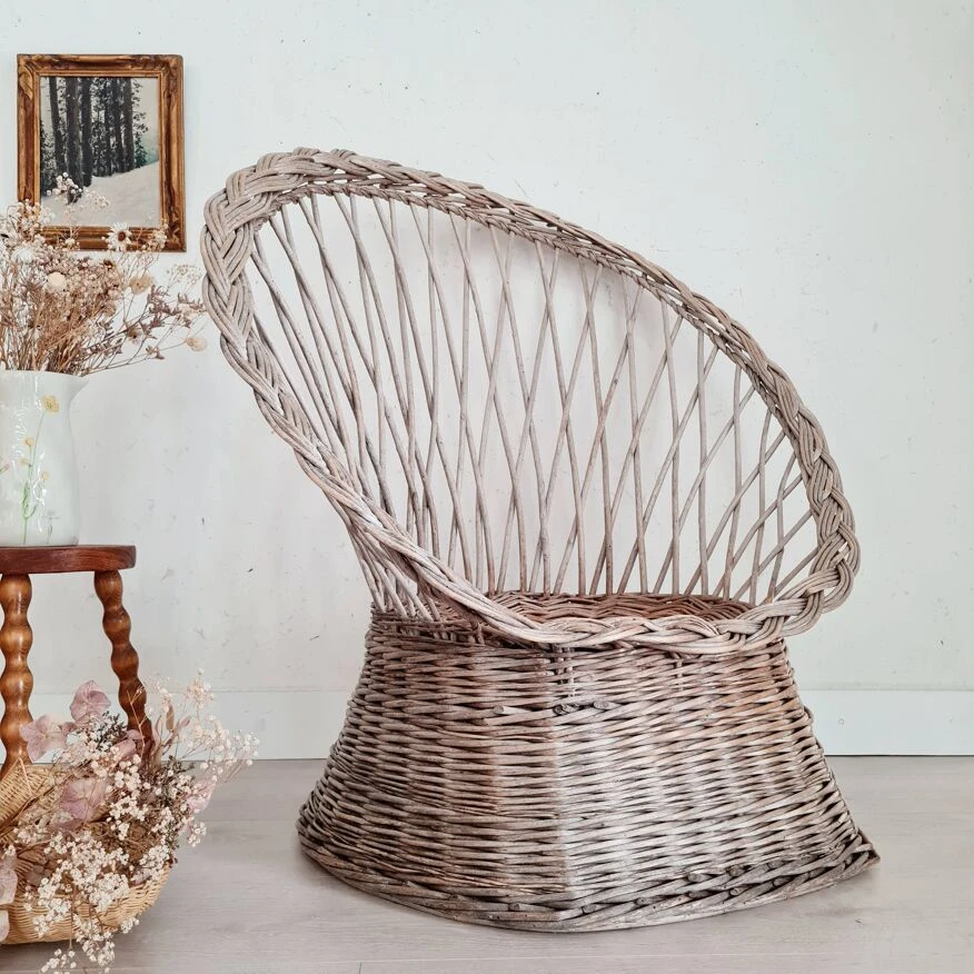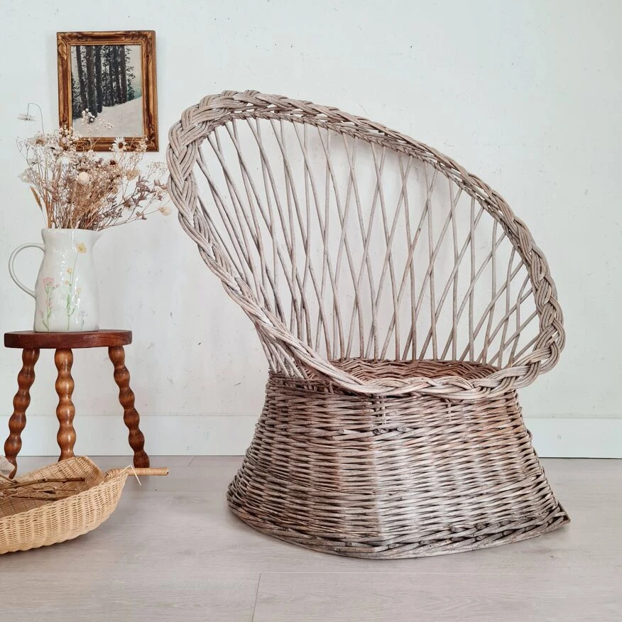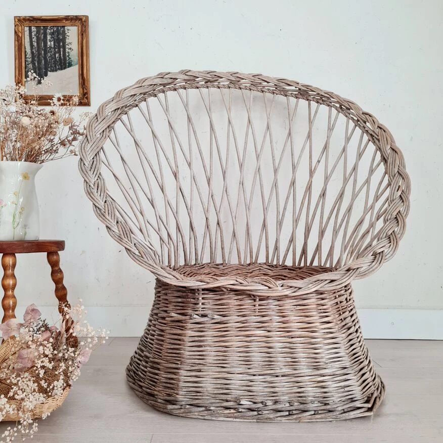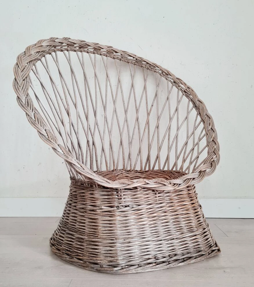 This armchair, called diabolo, is made of woven wicker.