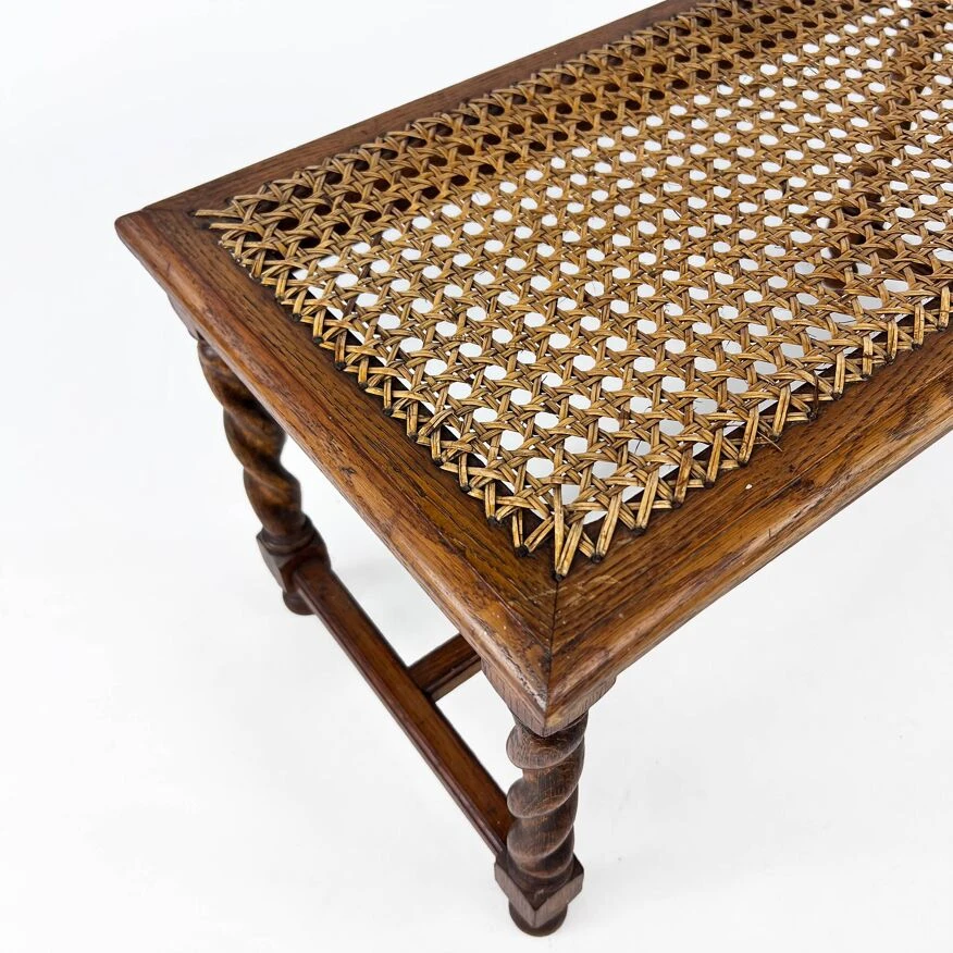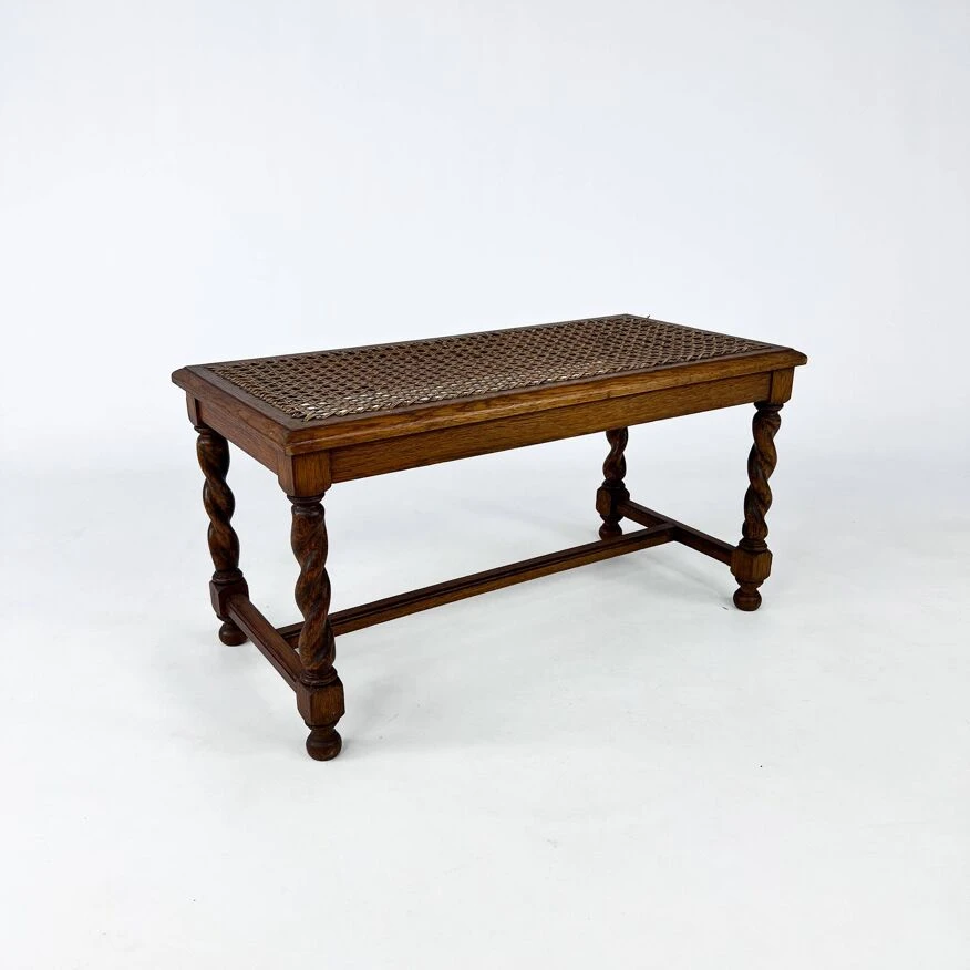 Antique bench made of solid oak and cane from the 1930s.the bench is in good condition with appropriate patina and light signs of use.