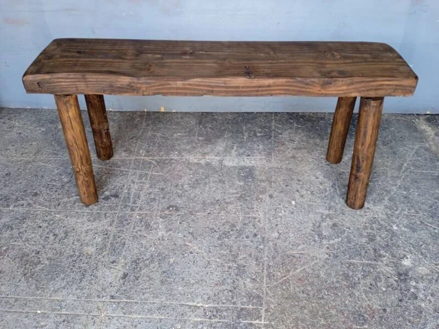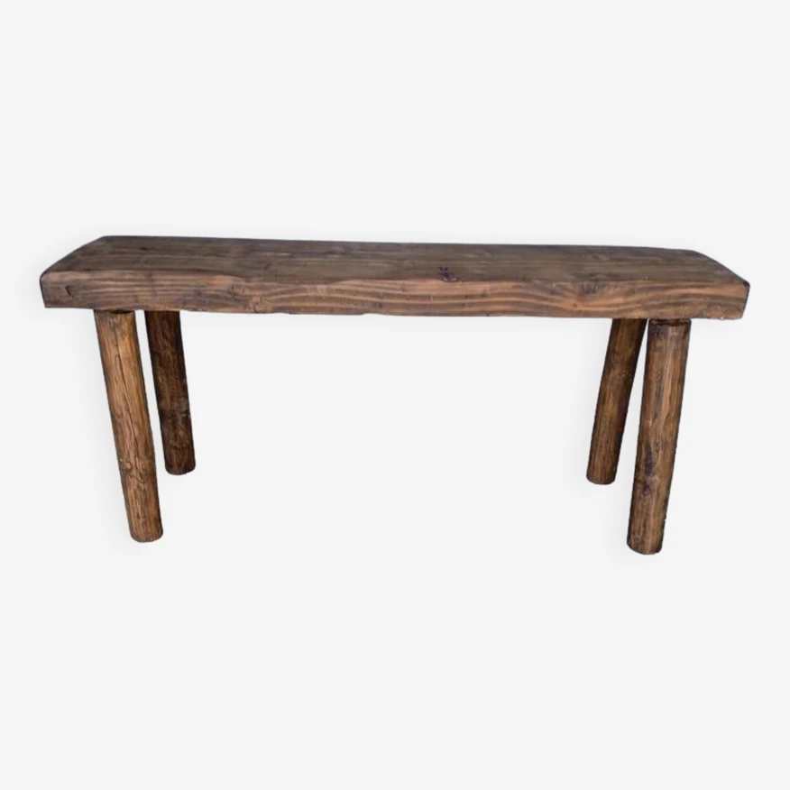 Bench / end of bed, in solid wood, sanded / stripped / restored and re-stained, traces of patina and normal use.