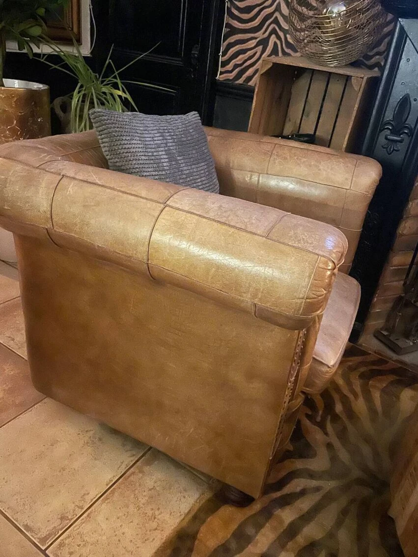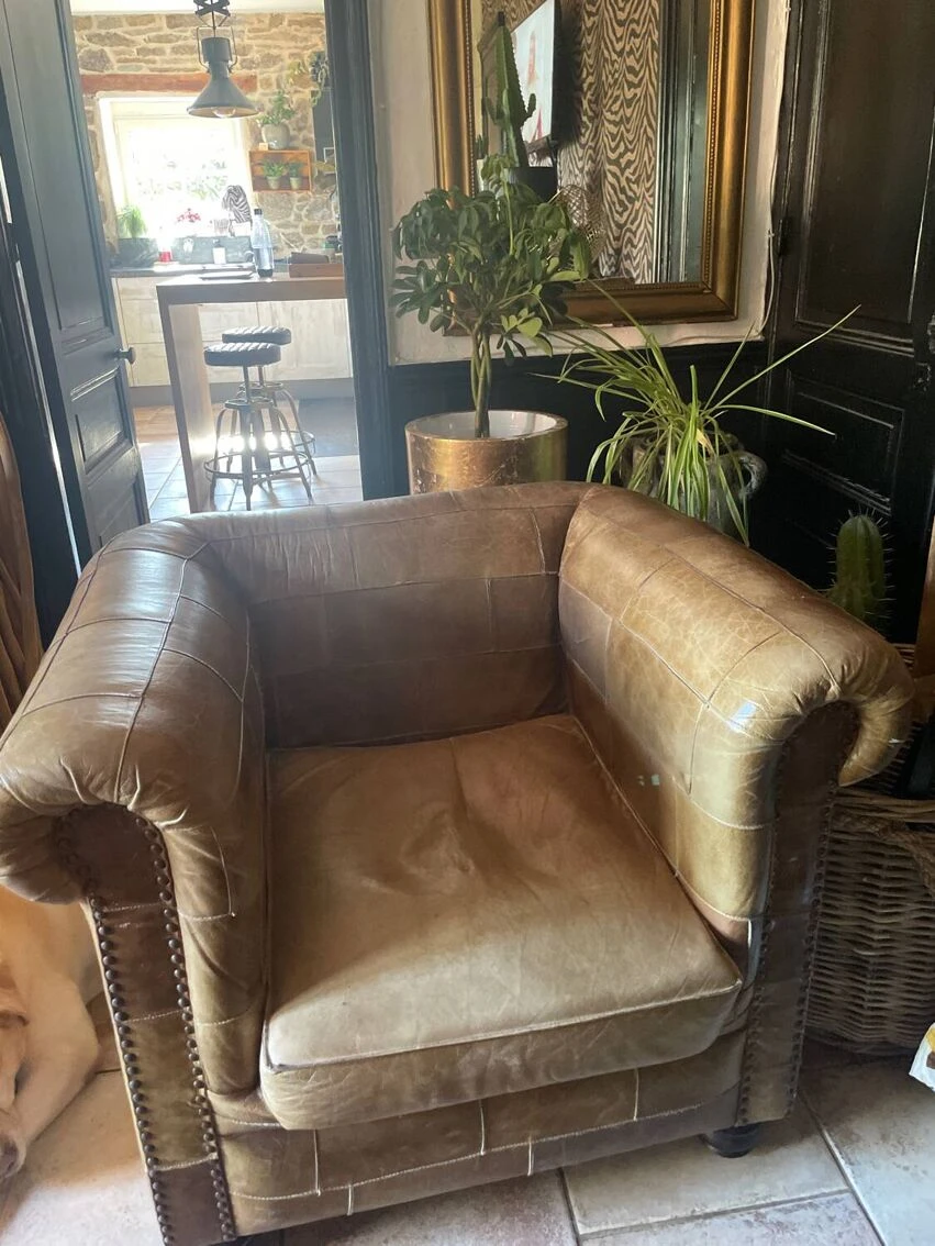 Selling chesterfied leather armchair bought for €699 at barak at 7, they are still on sale they are in good condition, you just need a little bit of care balm so that they regain all their splendor.