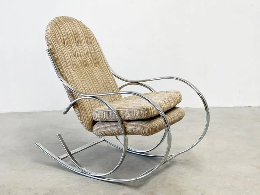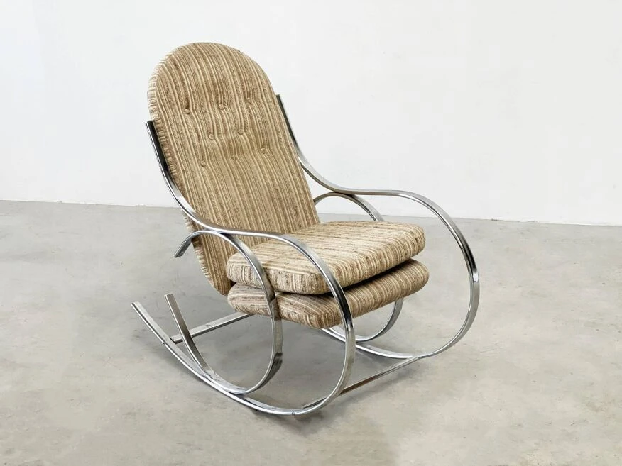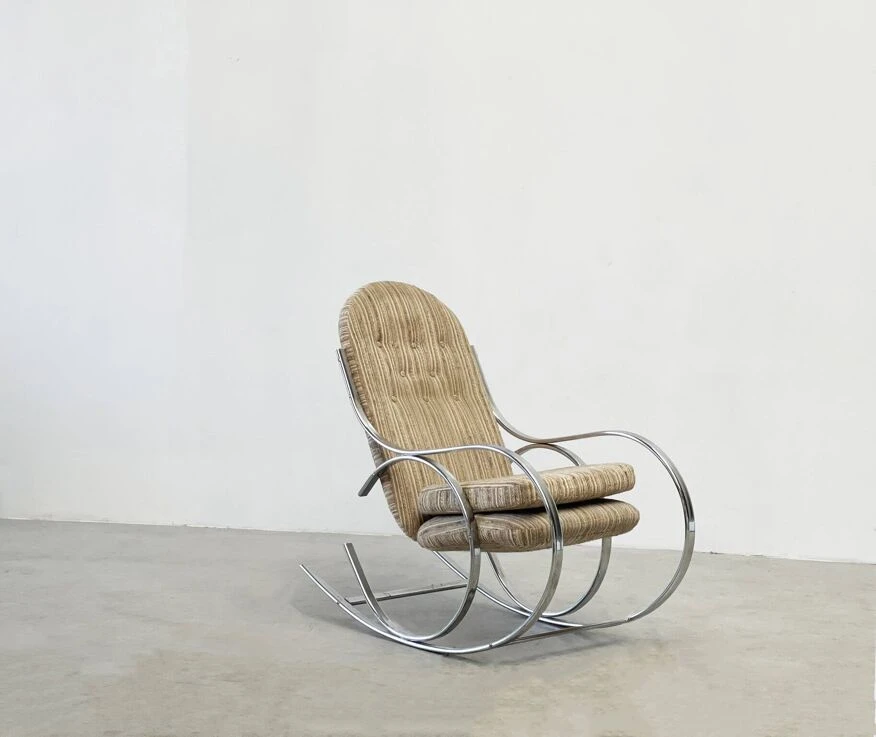 Chrome rocking chair with the original fabric.