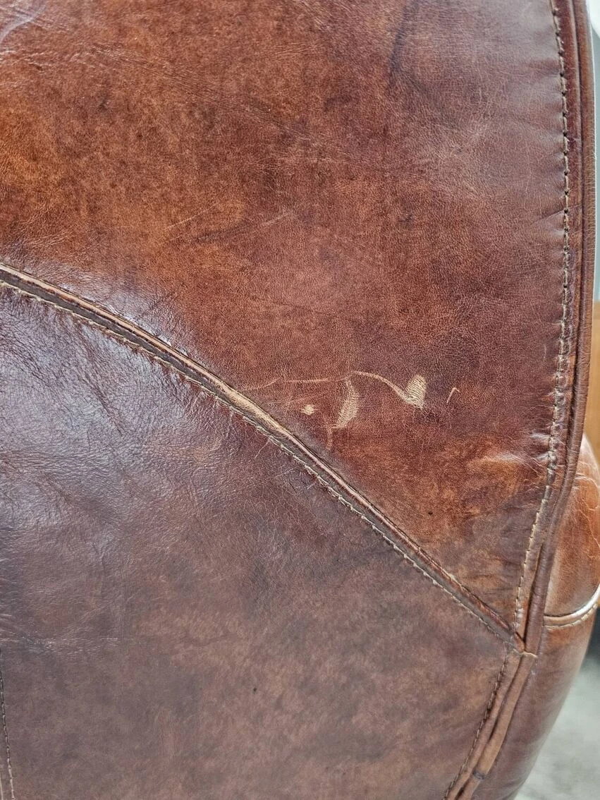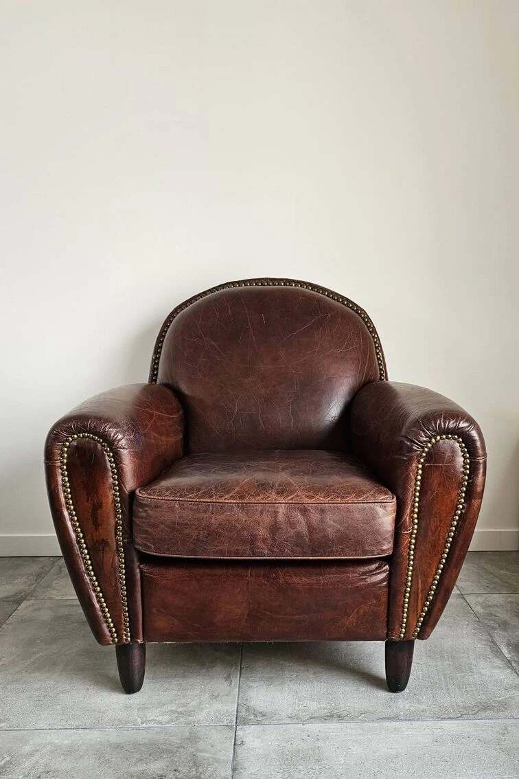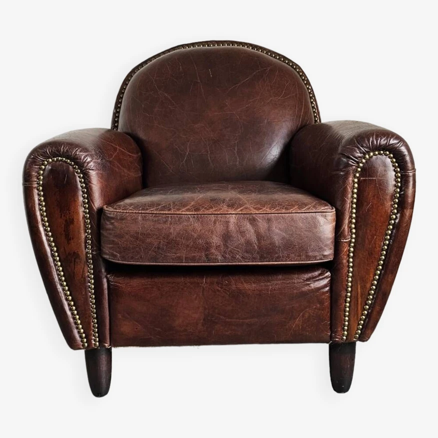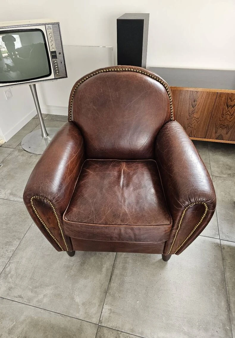 Club armchair from 2019, handmade in the north of France, brand: Signature In very good condition, with a superb patina. The leather is thick and of good quality. Very well maintained. Some scratches from moving. Visible in the photos. Visible in the photos.