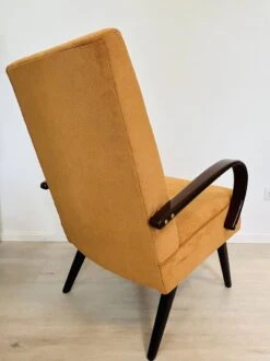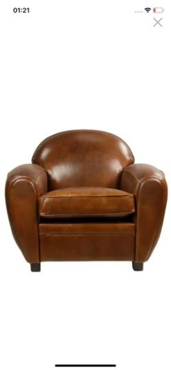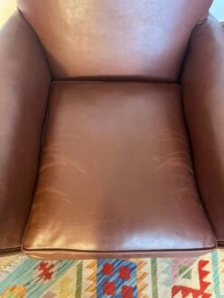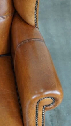 Very Rugged Wingback Armchair Made Of Cognac-colored Sheep Leather Finished With Decorative Nail Hea
