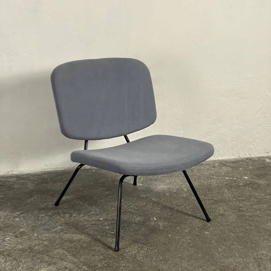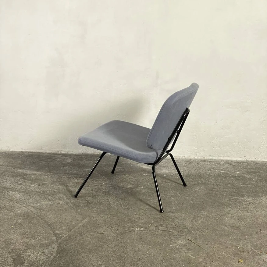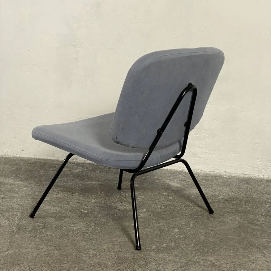 CM 190 fireside chair by Pierre Paulin for Thonet editions. Iconic armchair of French design from the 1950s. Tubular black lacquered steel base, seat and back in plywood covered with foam and bluish gray fabric. Completely re-upholstered, leg tips and seat shock absorber supports replaced as new. Very comfortable. Dimensions: H. 69 cm L. 54 cm D. 56 cm, Seat height 40 cm.