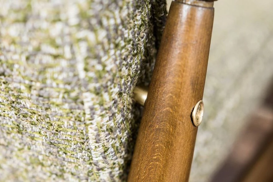 Reupholstered in green soft fabric.