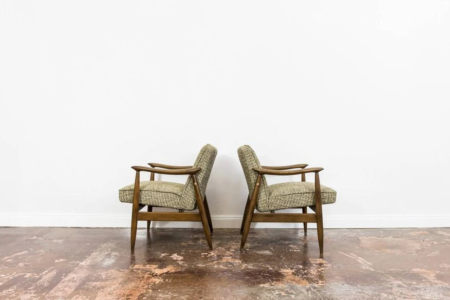 Pair of mid-century modern gfm 87 armchairs by juliusz kędziorek, gościcińskie furniture factory 1960s, poland.