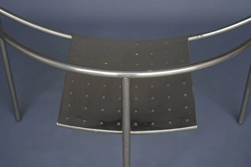 Classic design by Philippe Starck for Xo. Made of tubular steel and perforated sheet metal. Some minor chips to nickel finish on the seat.