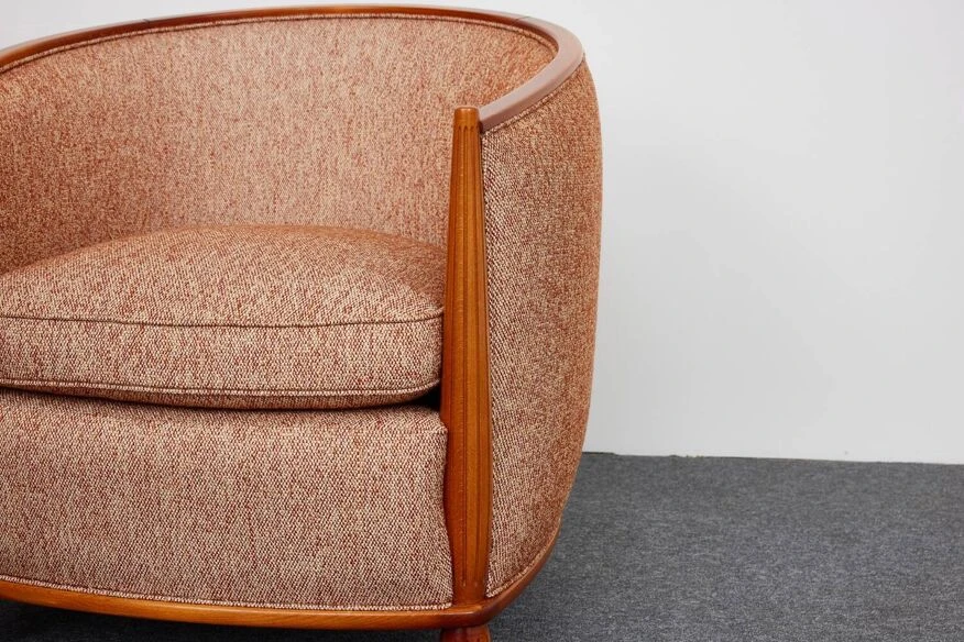 H78cm X l76cm X p75cm, assise h44cm tissu bouclé, « la créatrice de mode coco chanel a commencé à travailler avec des tissus à texture grossière comme le tweed de laine dans les années 1930.