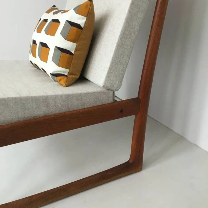 Cushions refurbished with light gray flannel fabric. 1960s.
