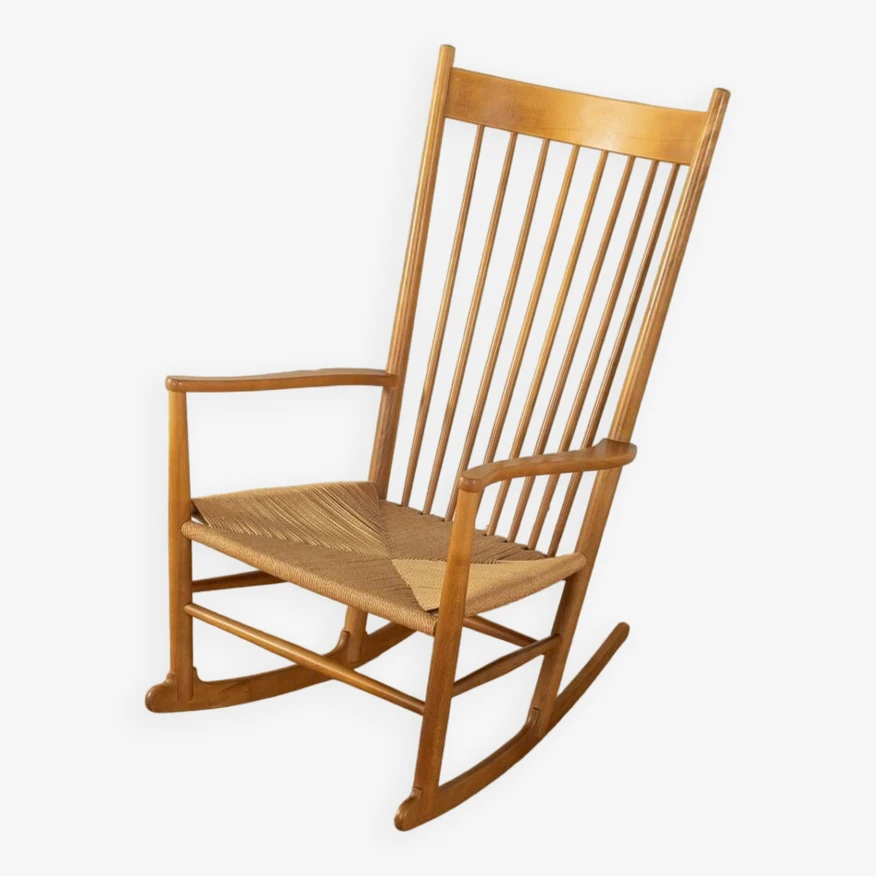 High-quality solid frame made of stained beech wood with hand-woven seat made of paper yarn.