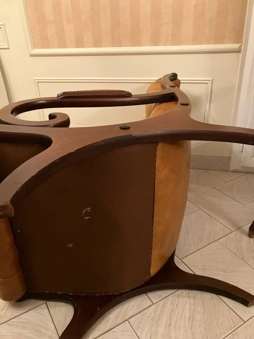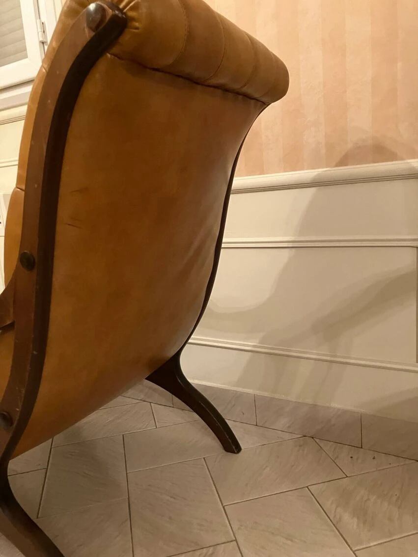 Victoria model Chesterfield rocking chair in cognac leather, very comfortable and in good condition. This timeless piece will add character and style to your living room.