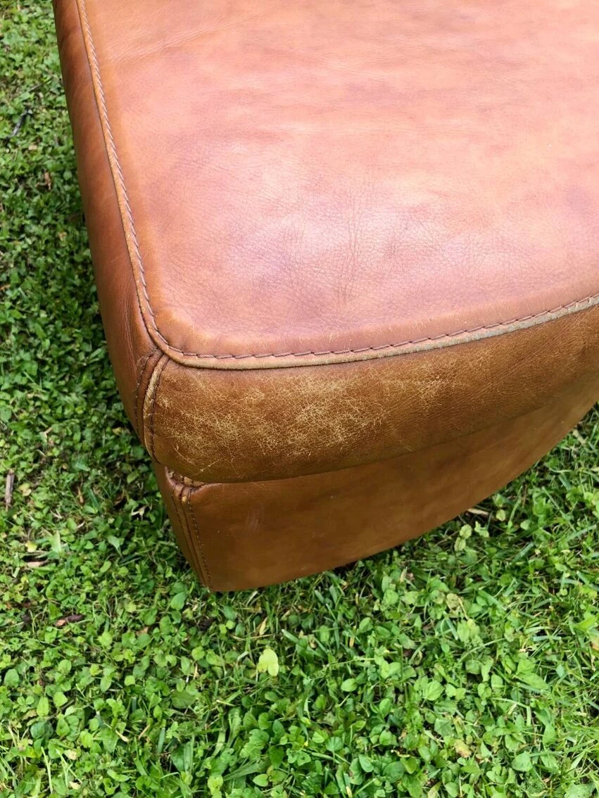 Leather chair from the 80s, with an original shape.