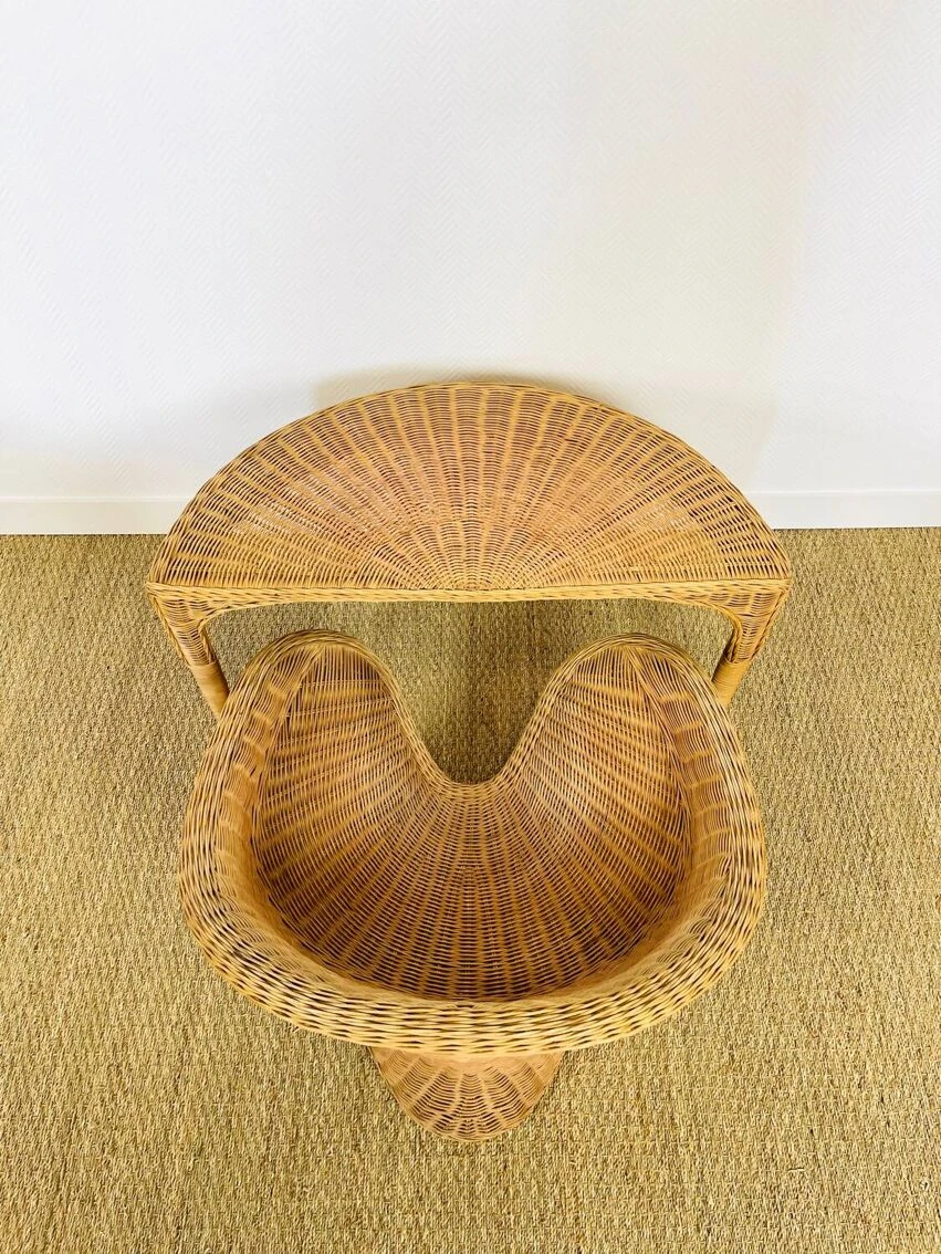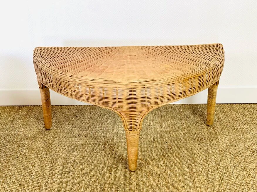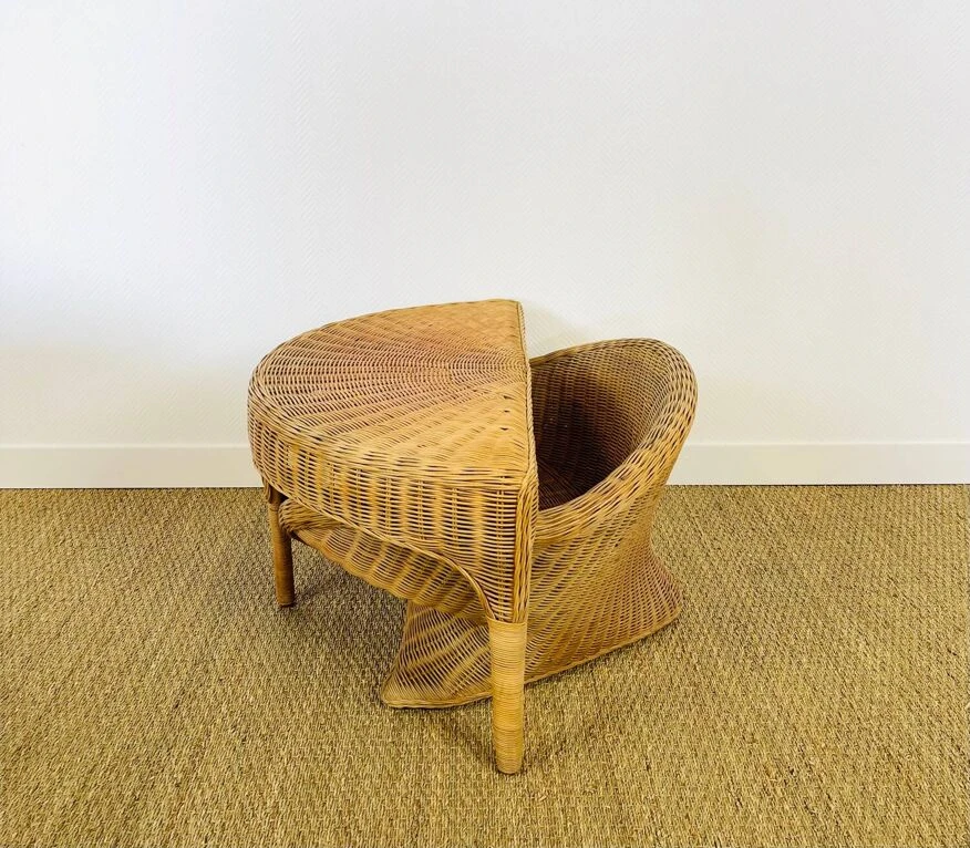Vintage rattan desk dimensions: – seat: h48 l77.5 d67 ha16 w62 pa34 – desk: h46.5 l94 d46.5 delivery possible throughout france.