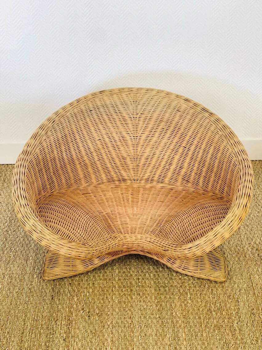 Rattan lotus mediation chair and its coffee table dating from the sixties, vintage.