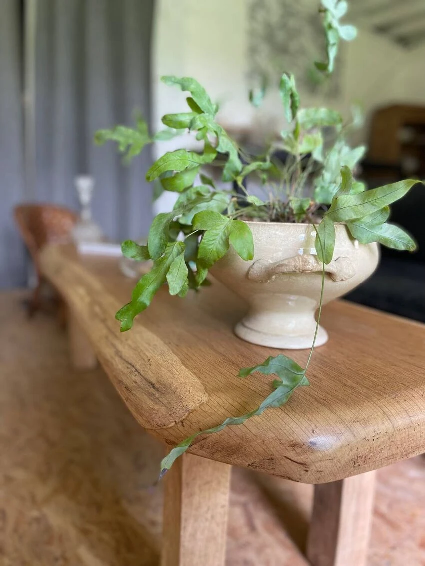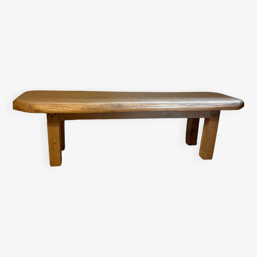 Versatility for this pretty piece in solid oak with its pretty rounded curves. As a bench for an entryway, as a coffee table or even at the end of a bed. Dimensions: Height: 47 cm. Length: 156 cm. Width: 45 cm.