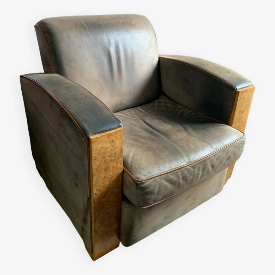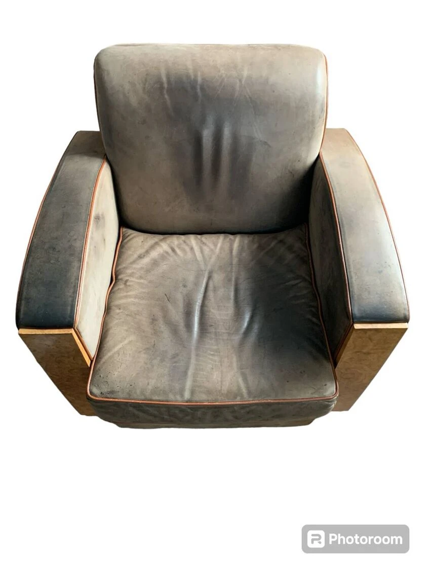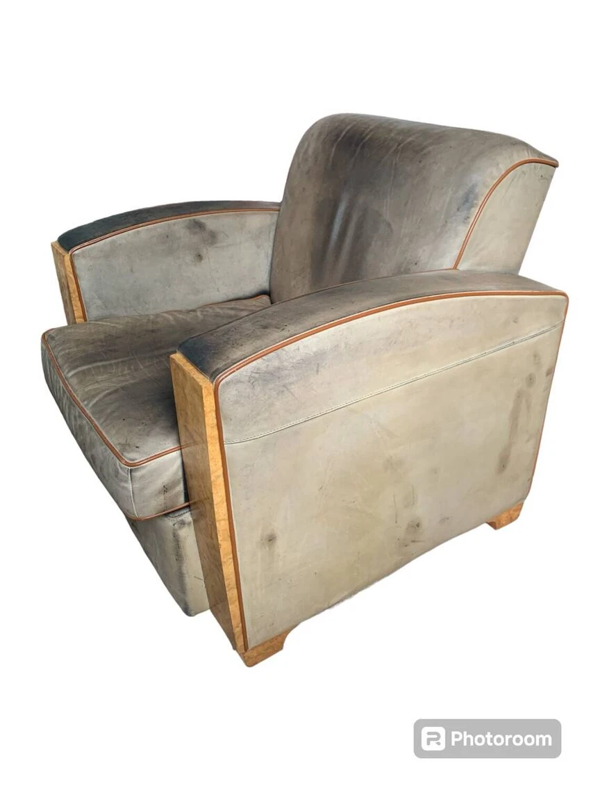 Leather club chair by designer bernard massot shows signs of wear but remains in good condition the leather has an odor the chair is very comfortable back height: 80cm width 80 cm depth 75cm seat height 40cm very trendy design and comfortable.