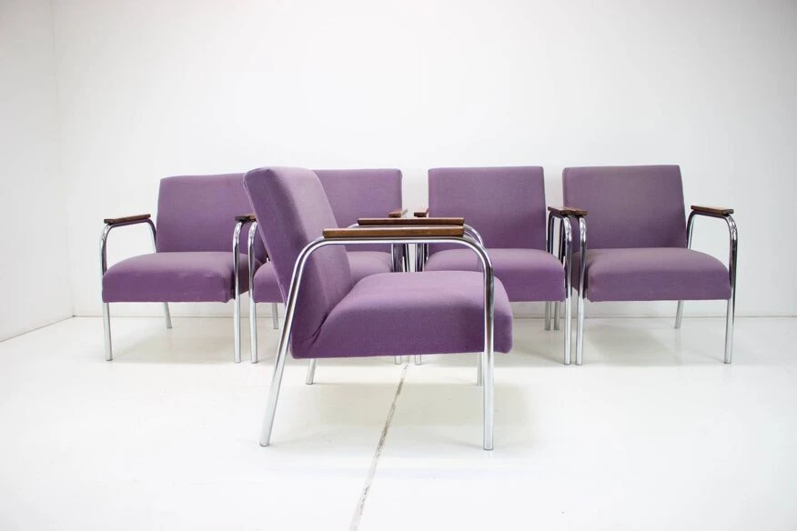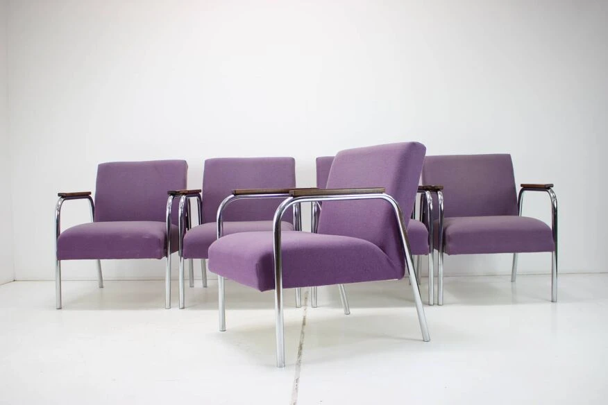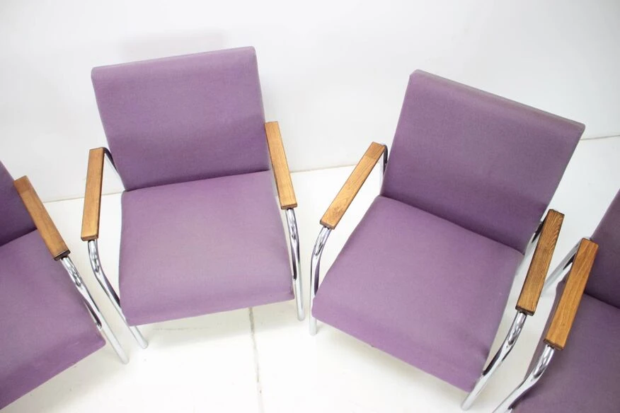 Made in germany made of chrome, fabric, wood seat height 44cm chrome has with aged patina, fully cleaned good original condition, signs of use the fabric shows signs of use.