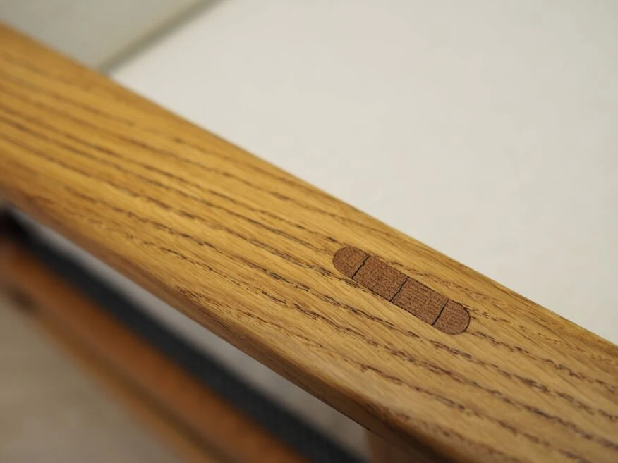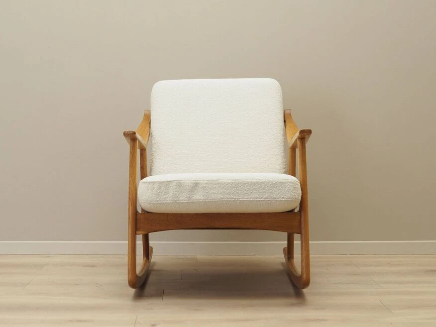 The armchair has undergone upholstery renovation, the fabric has been exchanged for a new one.