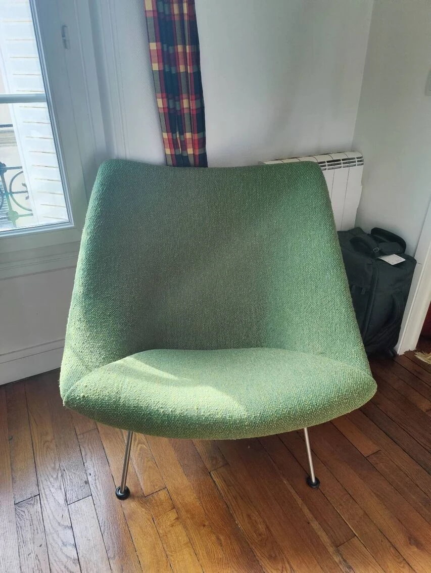 Oyster armchair by Pierre Paulin, was refurbished with Pierre Frey fabric two years ago. Not used a lot. I’m selling it because I moved and it’s too big for my house