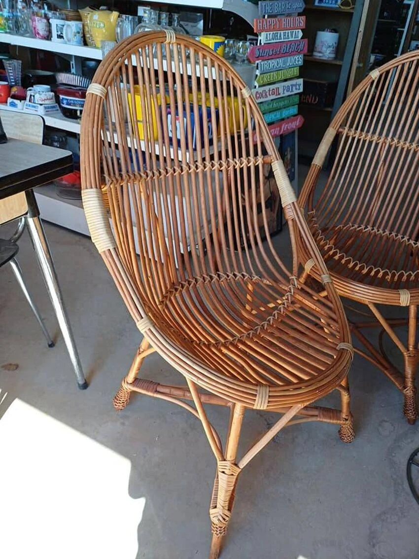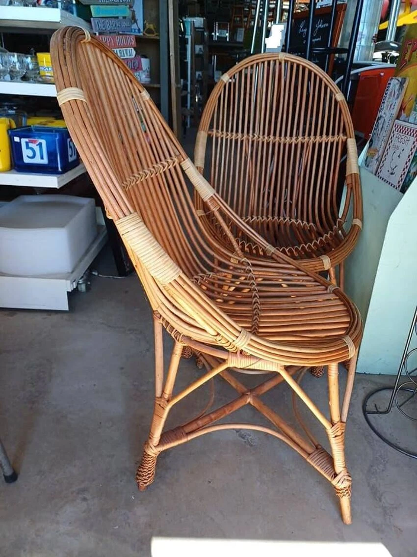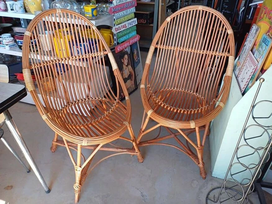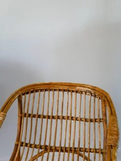 Pair of bamboo rattan armchairs good condition, old model and good quality width 62cm depth 55cm back height 100cm seat 42cm ref 1085.