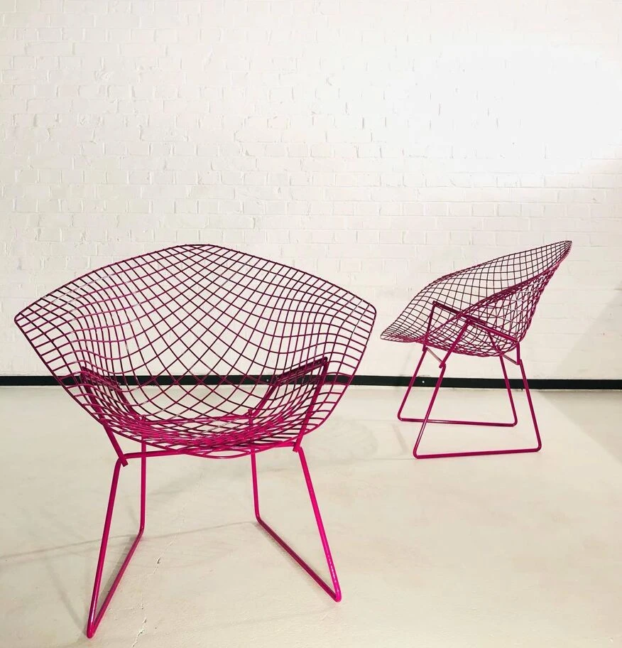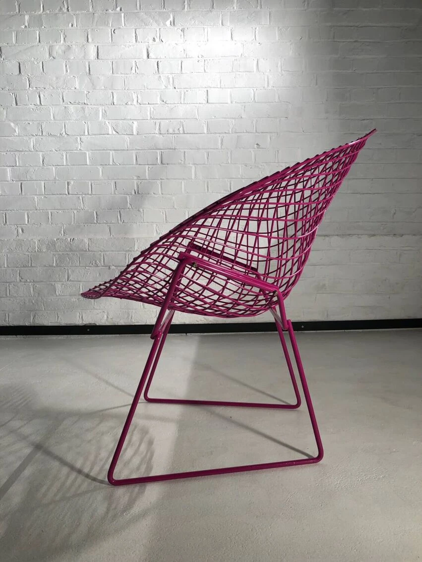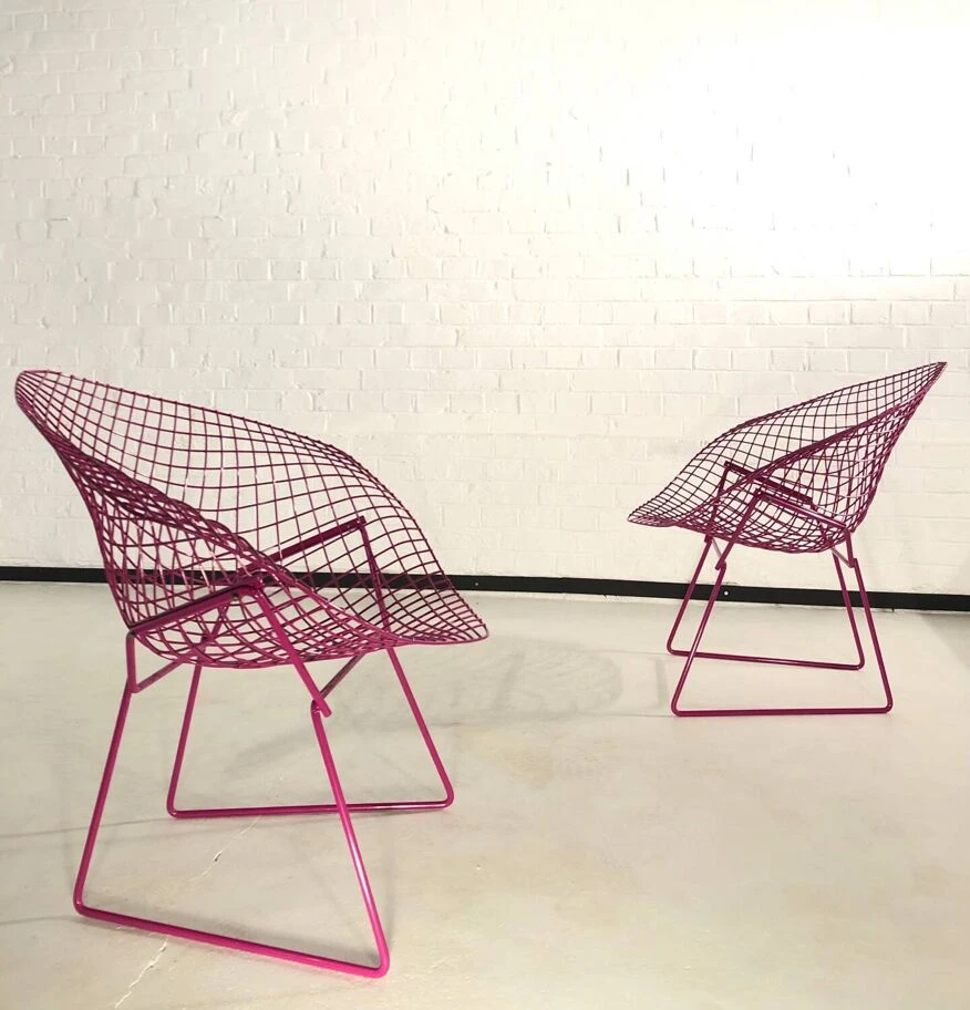 Two vintage armchairs circa 1960/1970. These are original, period seats. They were repainted at the factory (powder-coating) Some slight paint defects despite everything due to the age of the armchairs. Good condition. No unsoldered or twisted parts. Fuchsia pink/purple shade, shiny. Free delivery in Paris and the inner suburbs. Shipping possible within France.
