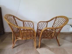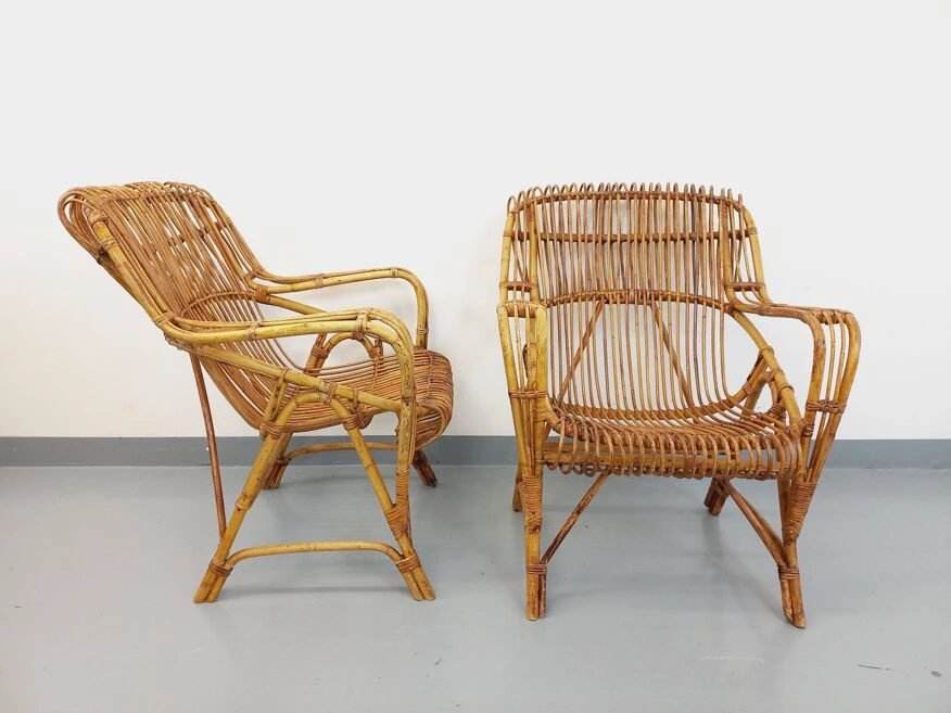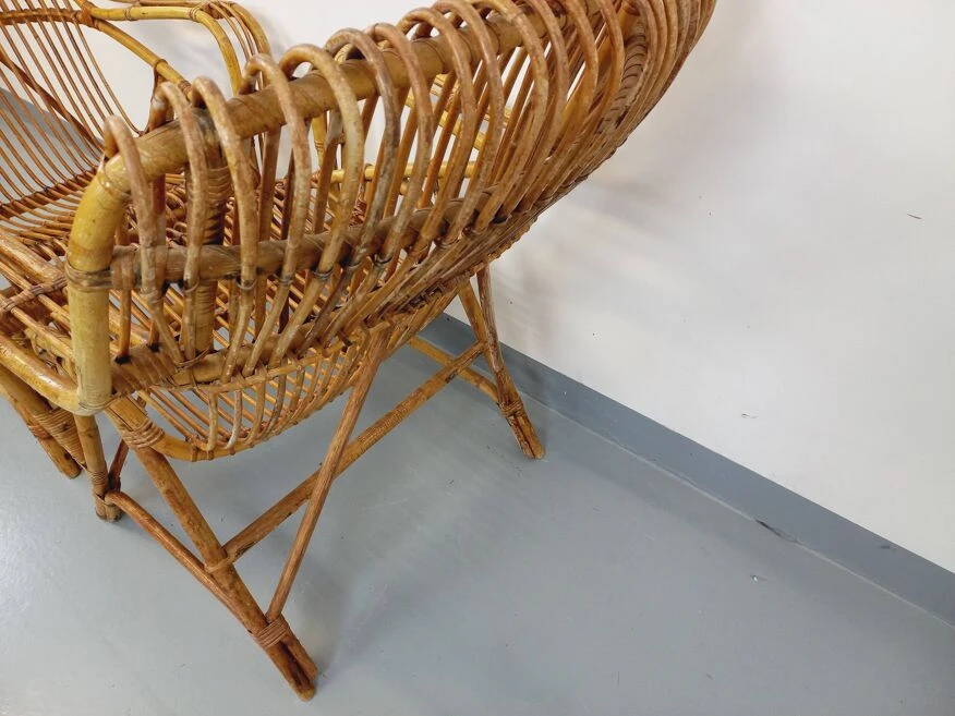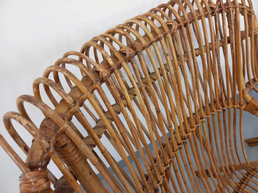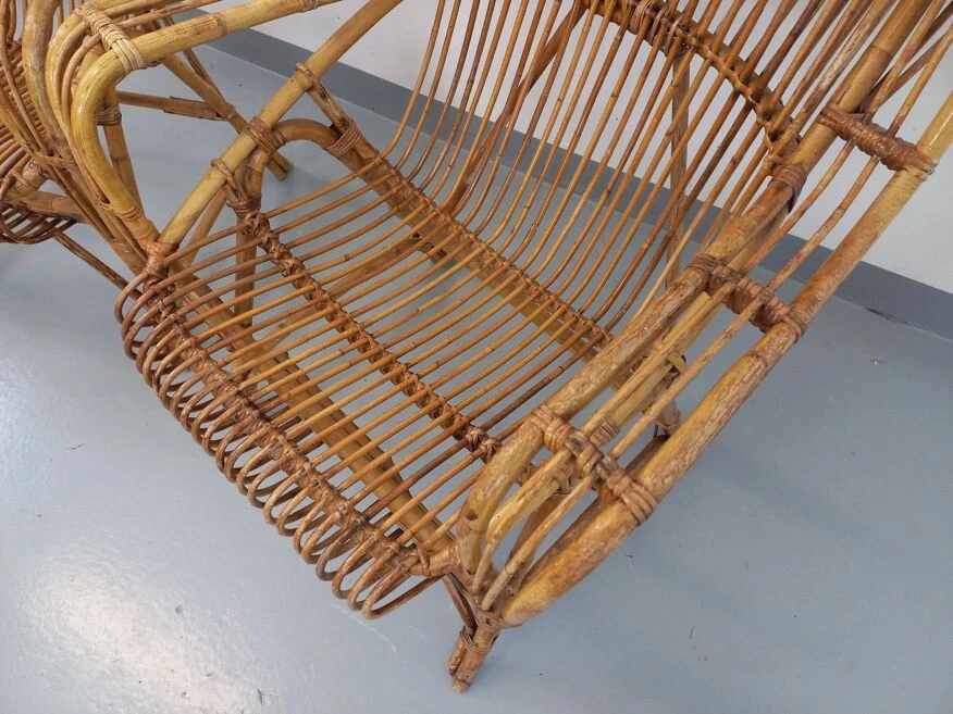 Good general condition with patina from the passage of time; missing varnish on rattan in certain places; but no shortage of rattan pieces.