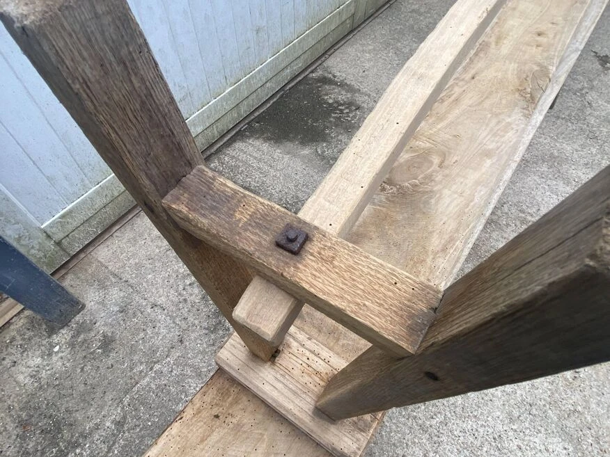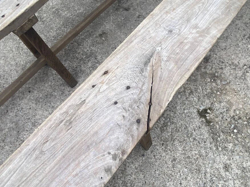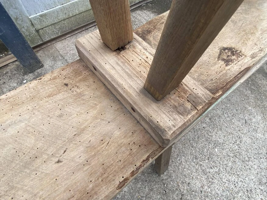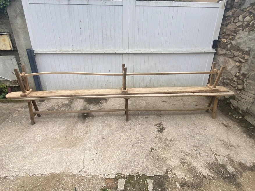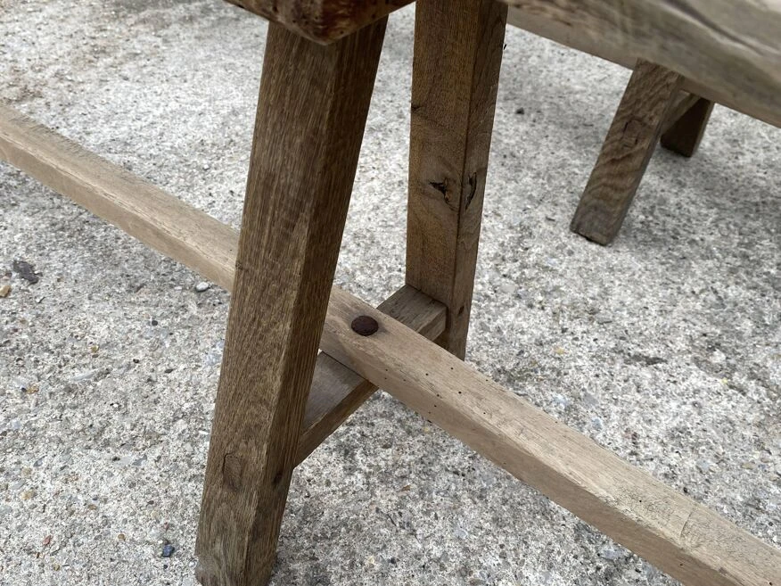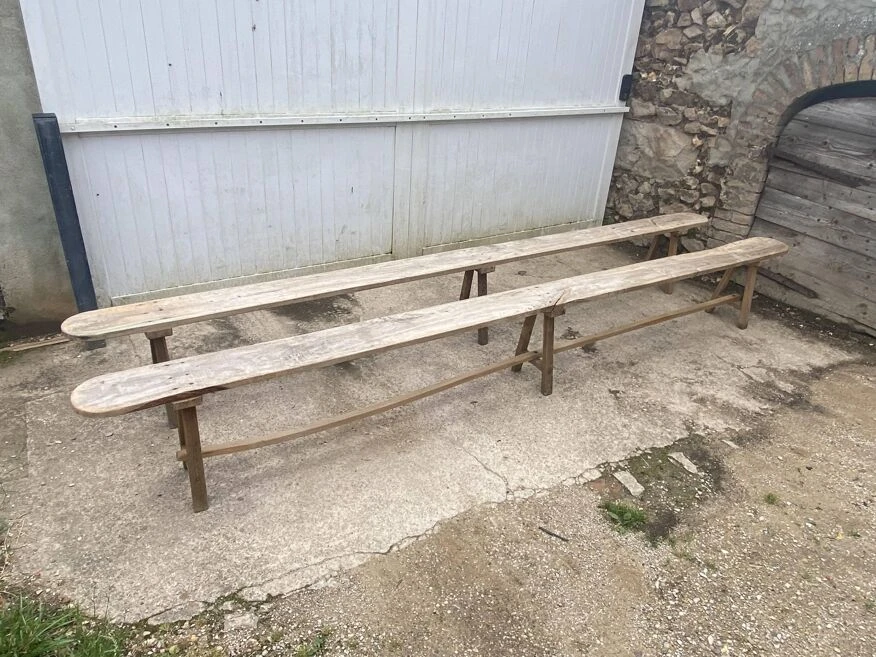 Very beautiful pair of authentic old benches for farm tables, just out of the barn. Benches fully doweled and nailed, very stable and solid. Various old traces of use, wormholes, various wear, These benches are perfectly functional, very beautiful period craftsmanship. Length 350cm (355cm) Seat width 20cm. Feet width 25cm. Height 45cm. Weight 15kg each bench.