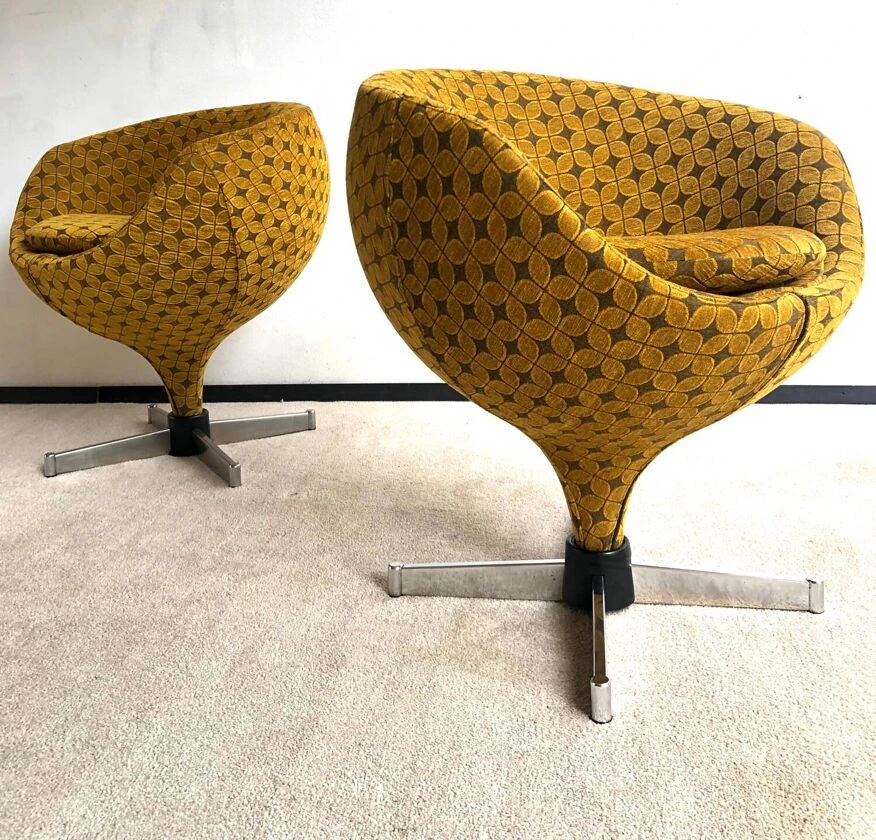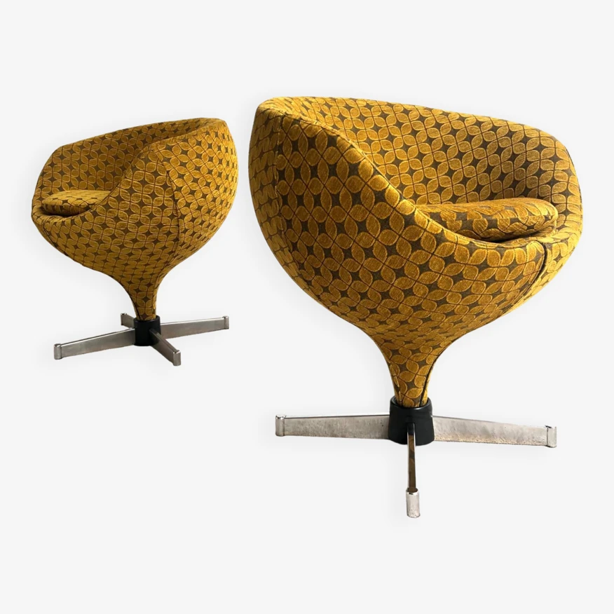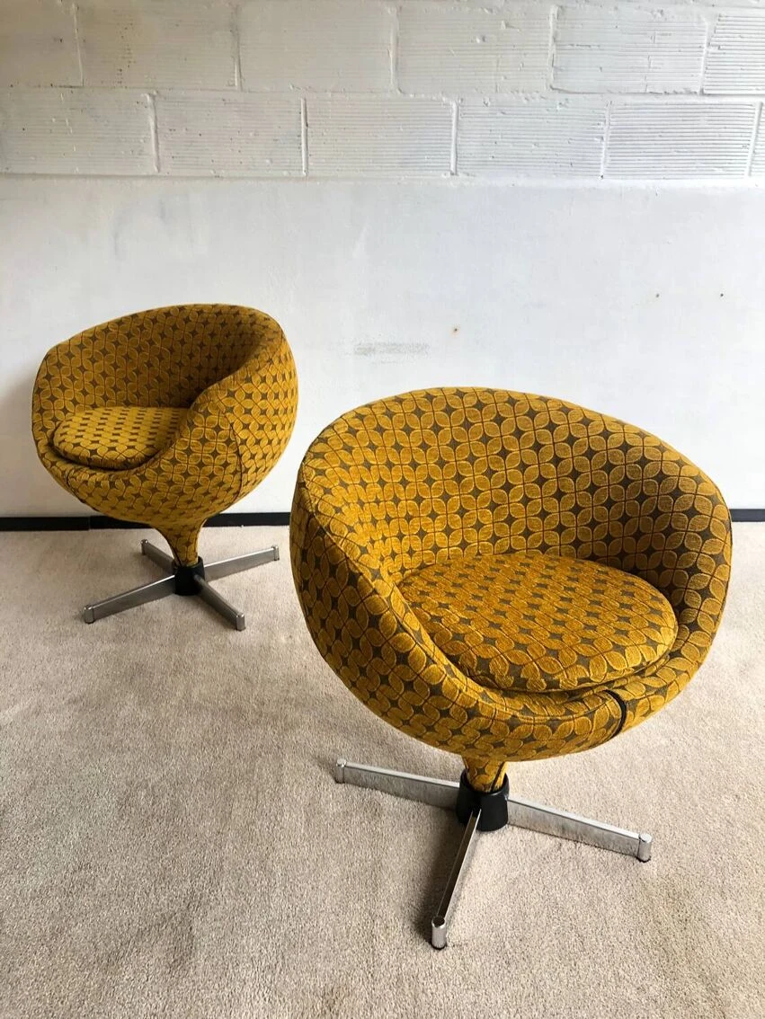 Set of two “ballchair” Meurop Edition. Excellent condition. Swivels. They have been completely restored. The low velvet covering and the foams are new. Nothing to predict. Clean and sturdy. Seat height 53 cms FREE DELIVERY IN PARIS AND PETITE COURONNE IDEM PARIS AX BEAUVAIS ROUEN AMIENS LILLE Ideal Scandinavian retro decor 1970 seventies lounge lounge chair