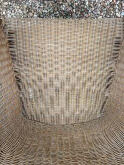 Pair of quality old armchairs, in rattan and wood / armrests and feet. Height 90 cm. Width 62 cm. Depth 62 cm. Weight of an armchair 9 kg. Some marks from time but are in good condition.