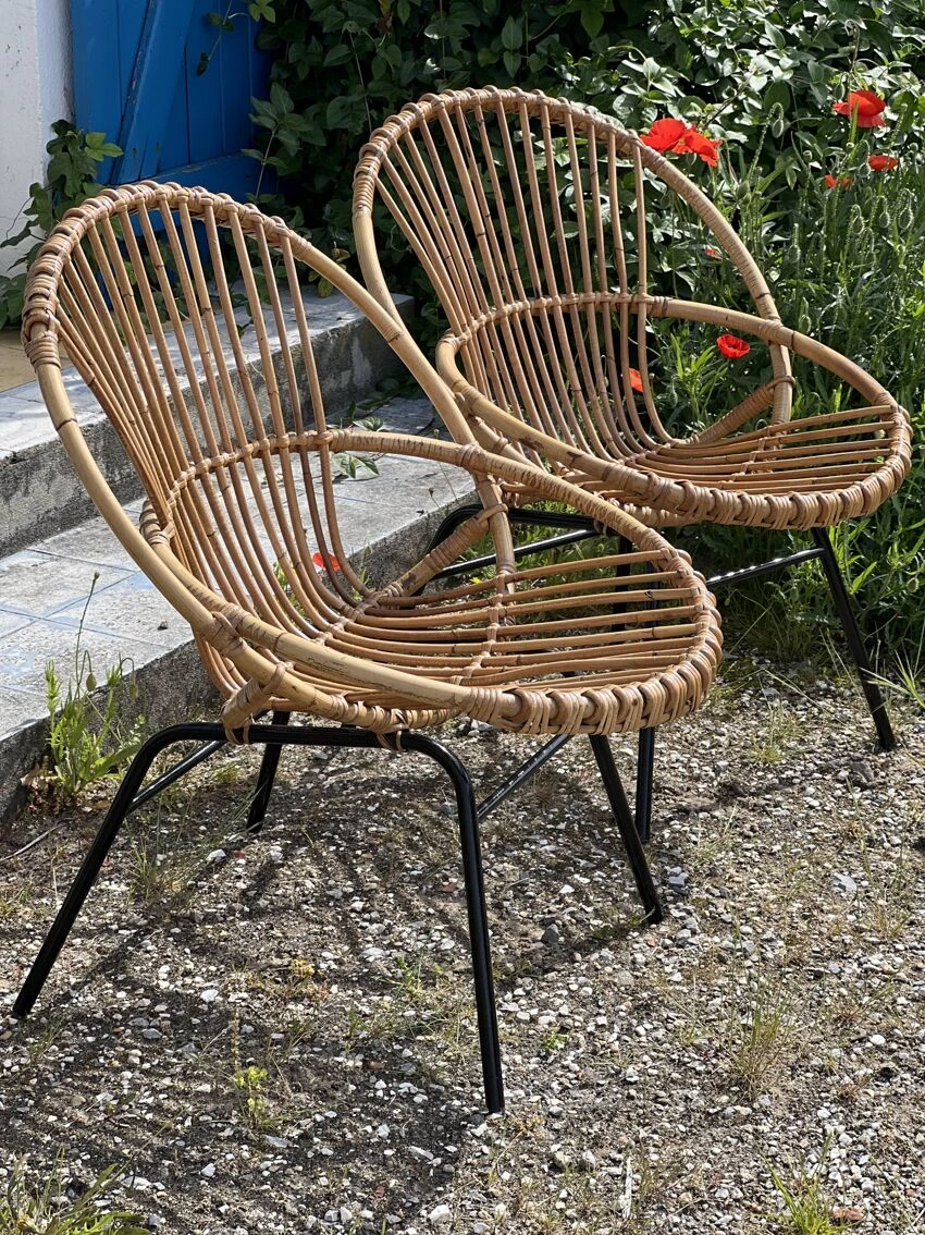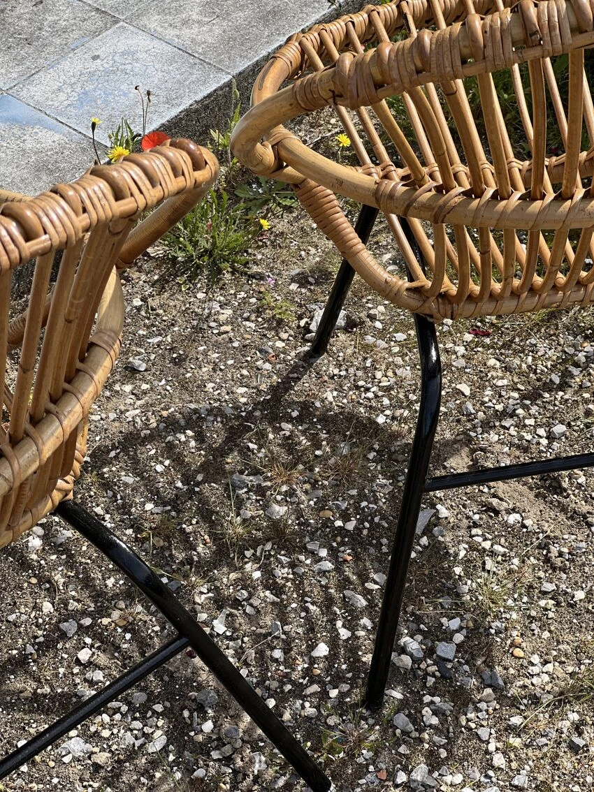 Pair of mid-century modern rattan patio armchairs from rohe noordwolde, netherlands, 1960s.