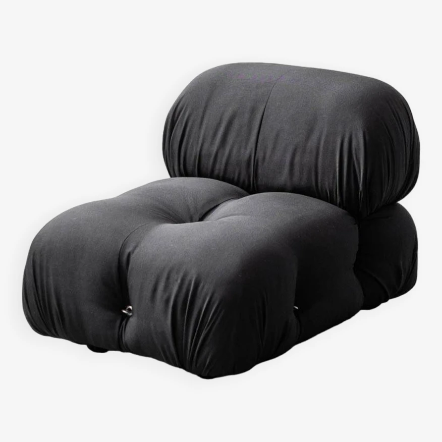 Rivestimento: La poltrona è rivestita in tessuto nero, che conferisce un aspetto elegante e sofisticato.