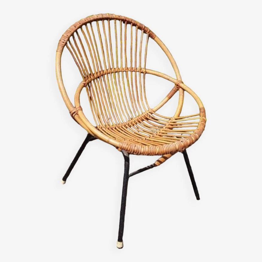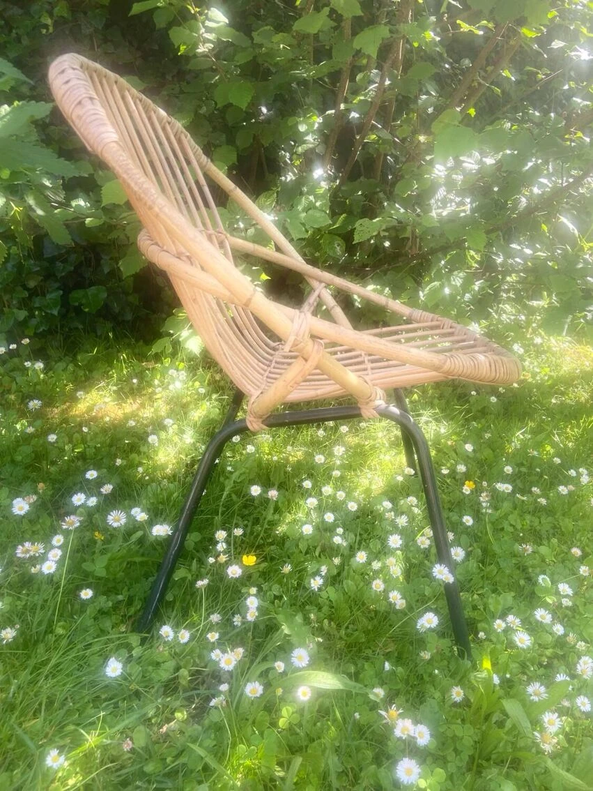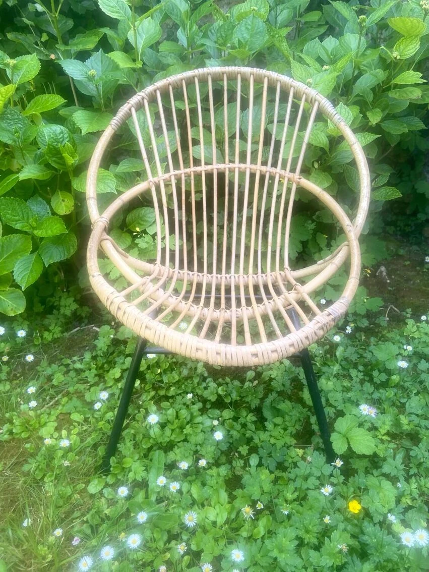 A vintage armchair with black iron base in good condition the whole is in good condition, some visible and acceptable traces of time, the base is free of rust.