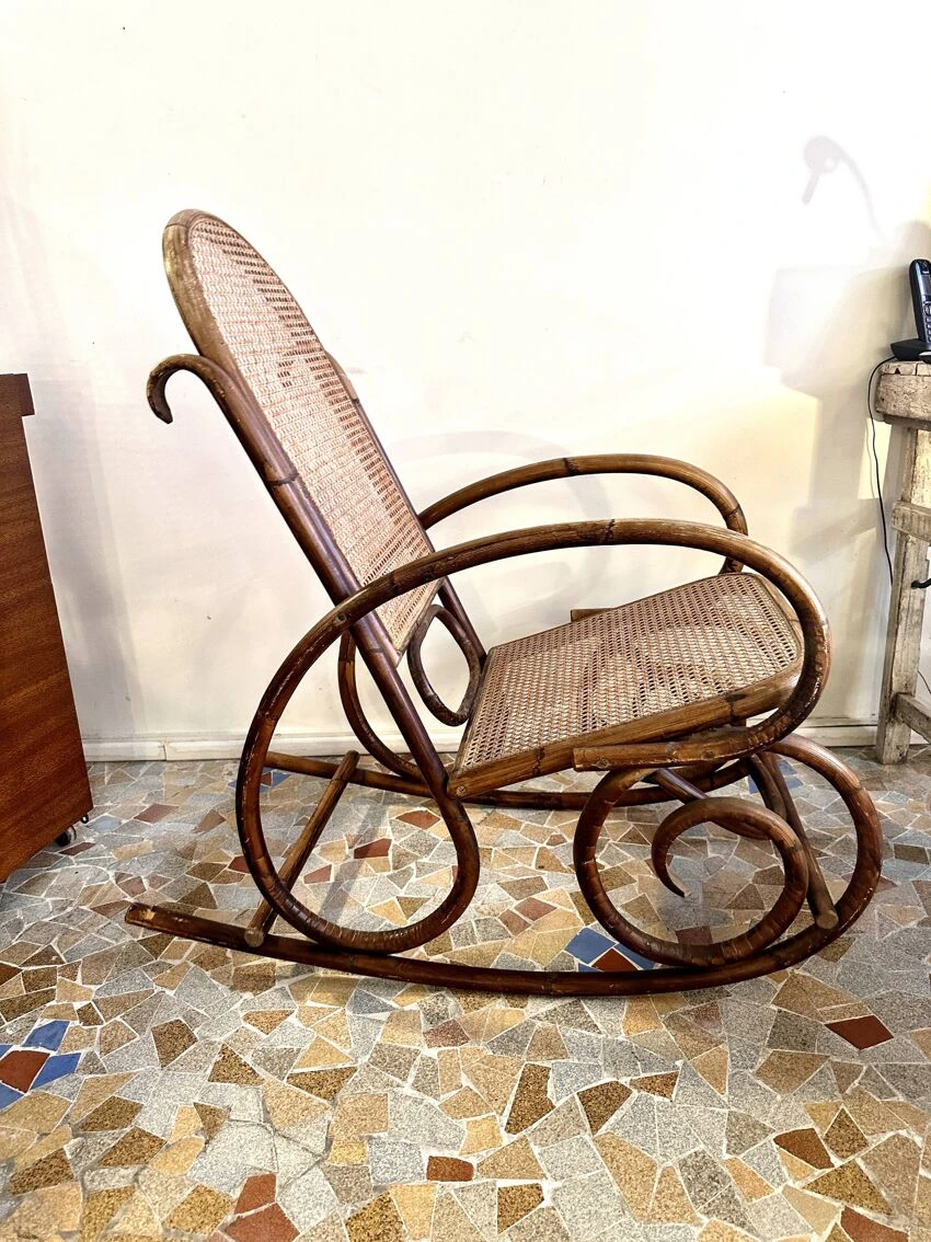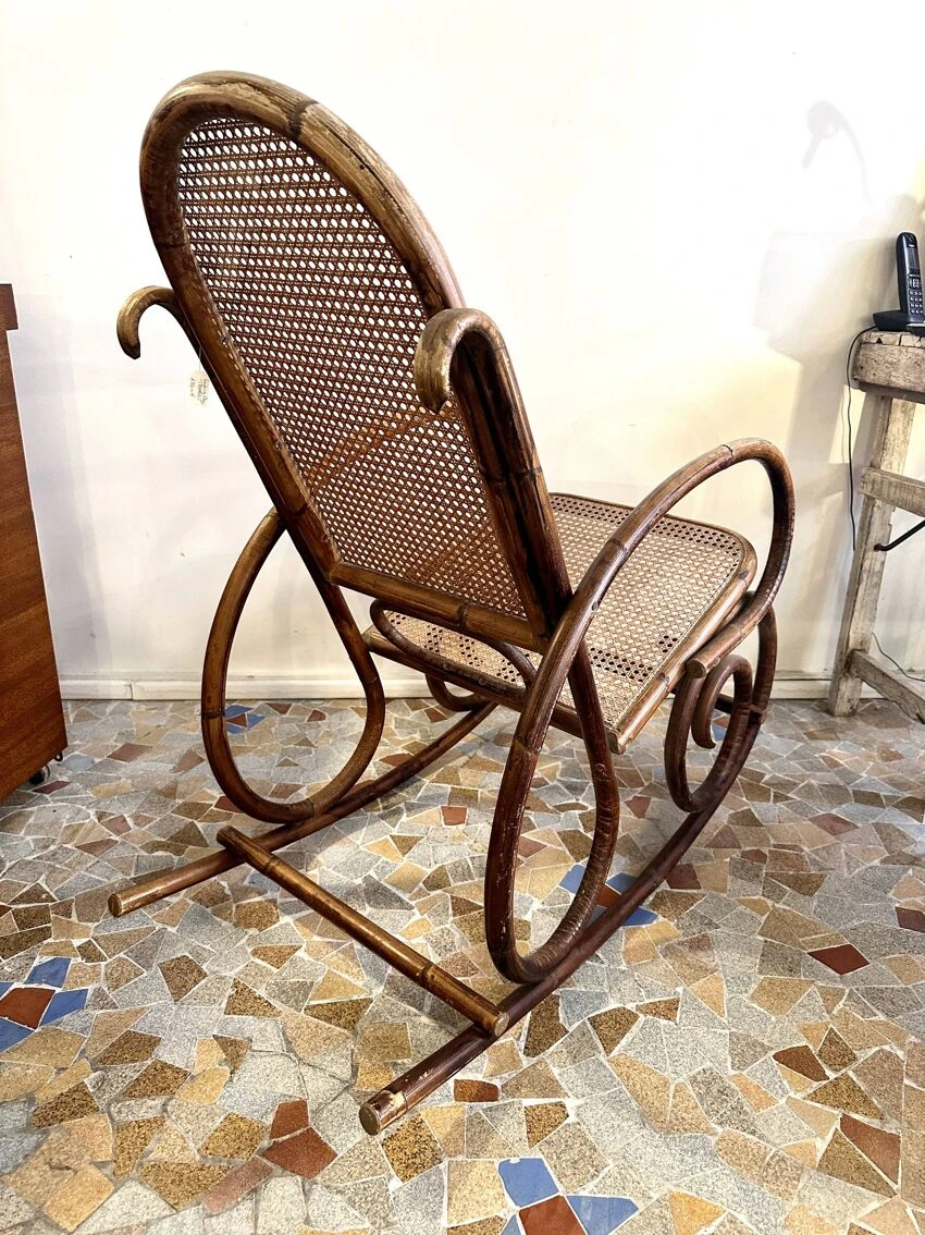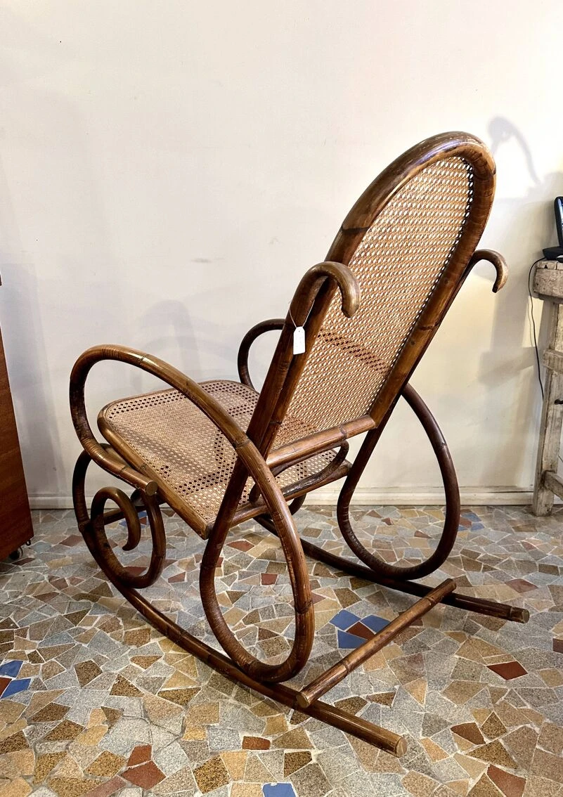 Rattan and cane rocking chair, good condition and very comfortable.