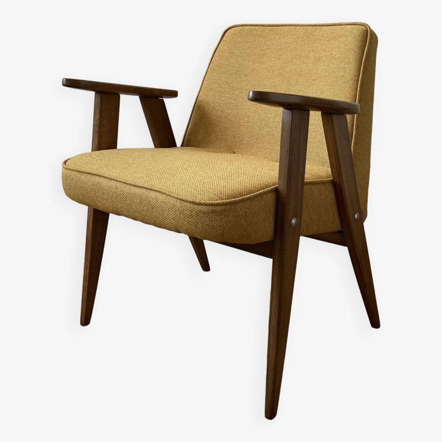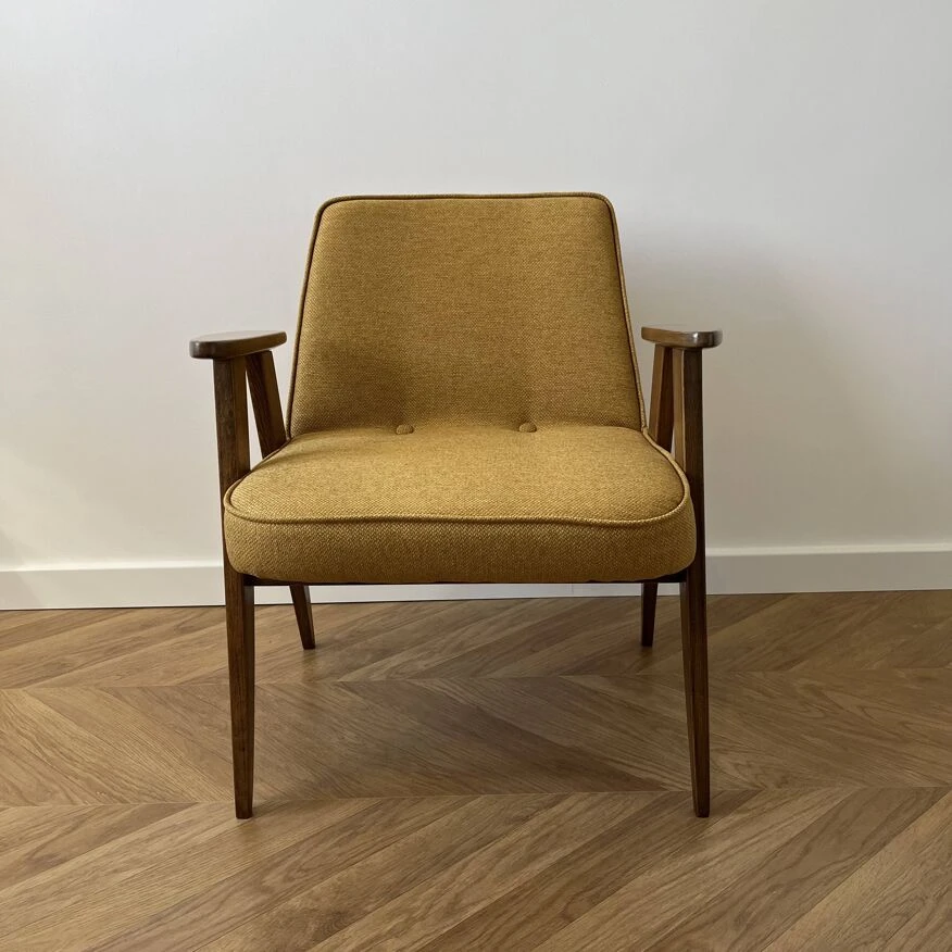 This armchair type 366 was designed in the 1960s by józef chierowski and produced at dolnośląskie fabryki mebli in świebodzice (until 1970).