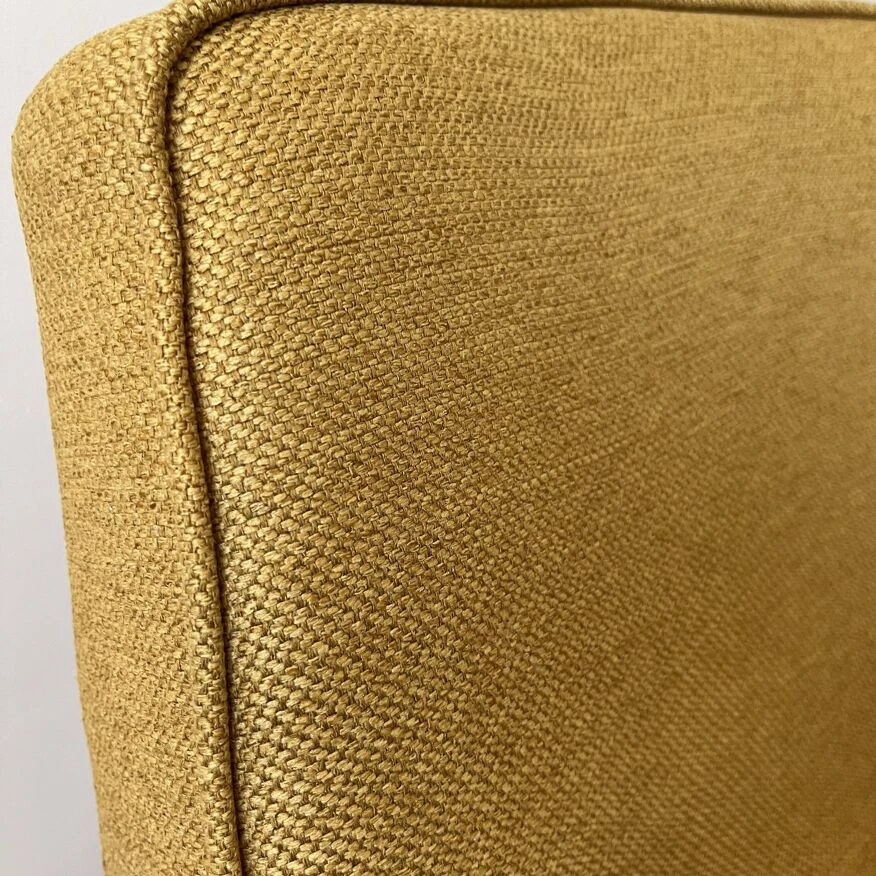 The upholstery fillings like belts and foam have been replaced and covered with dark mustard fabric.