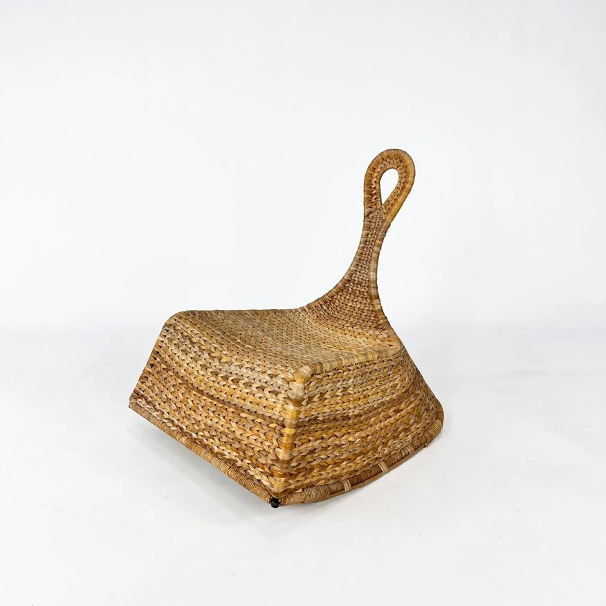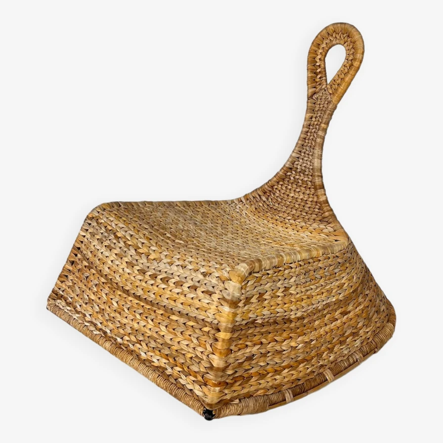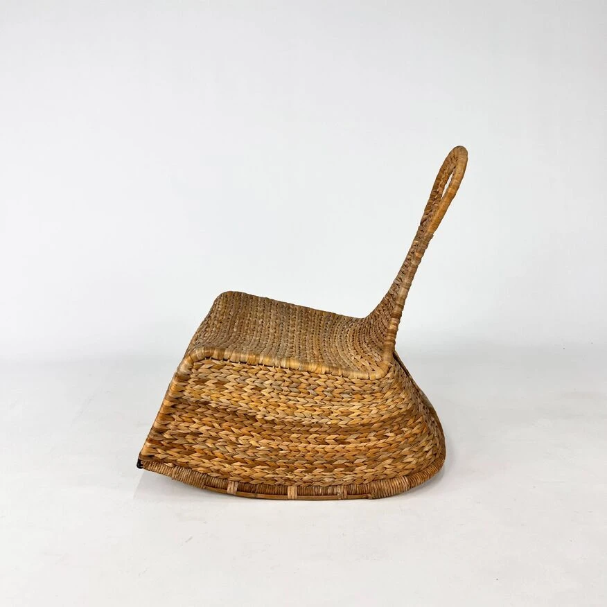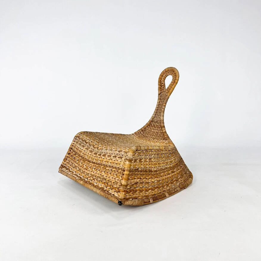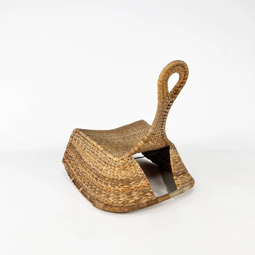 The chair is made of woven banana leaves.