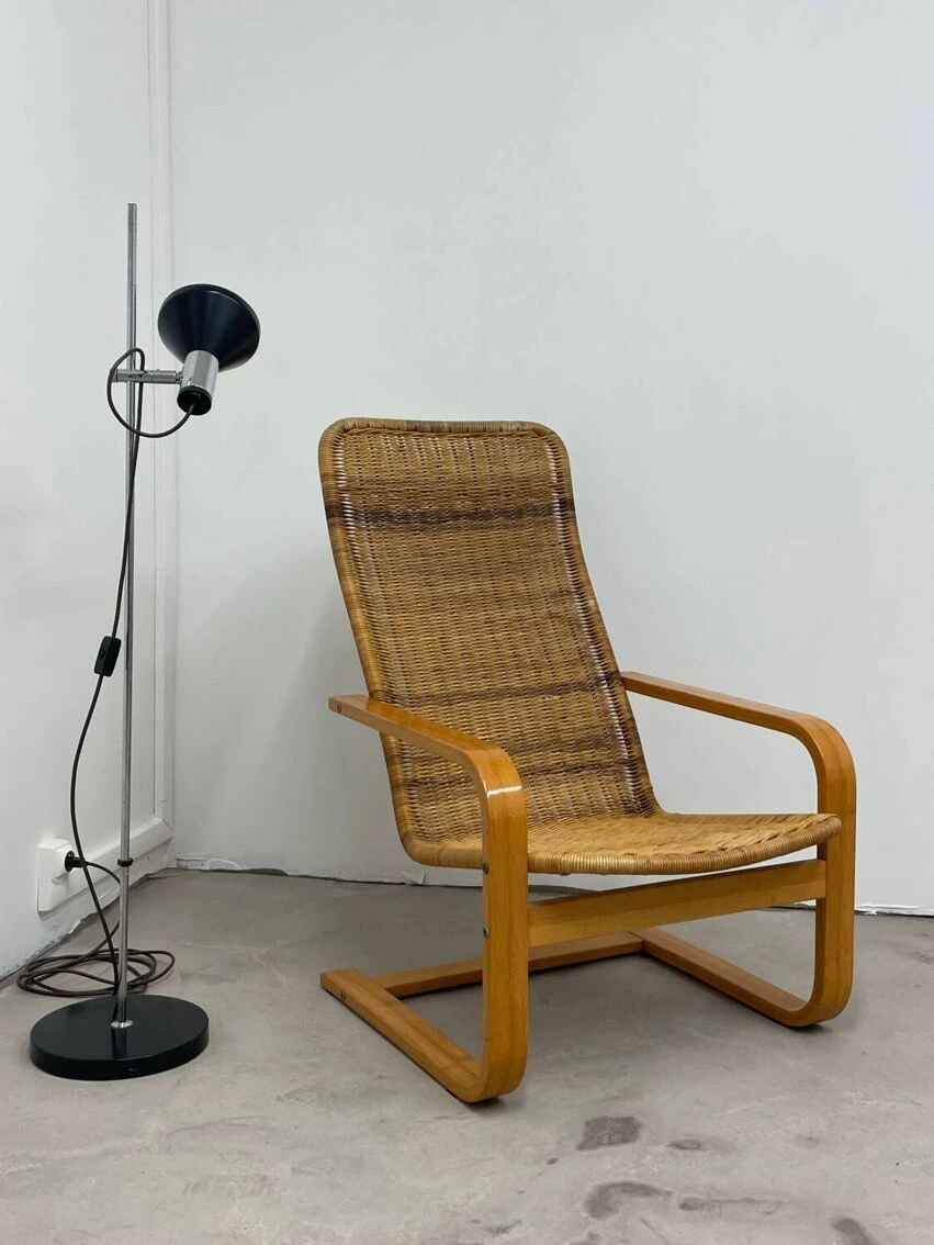 Scandinavian armchair in woven rattan by ikea, rare vintage edition.