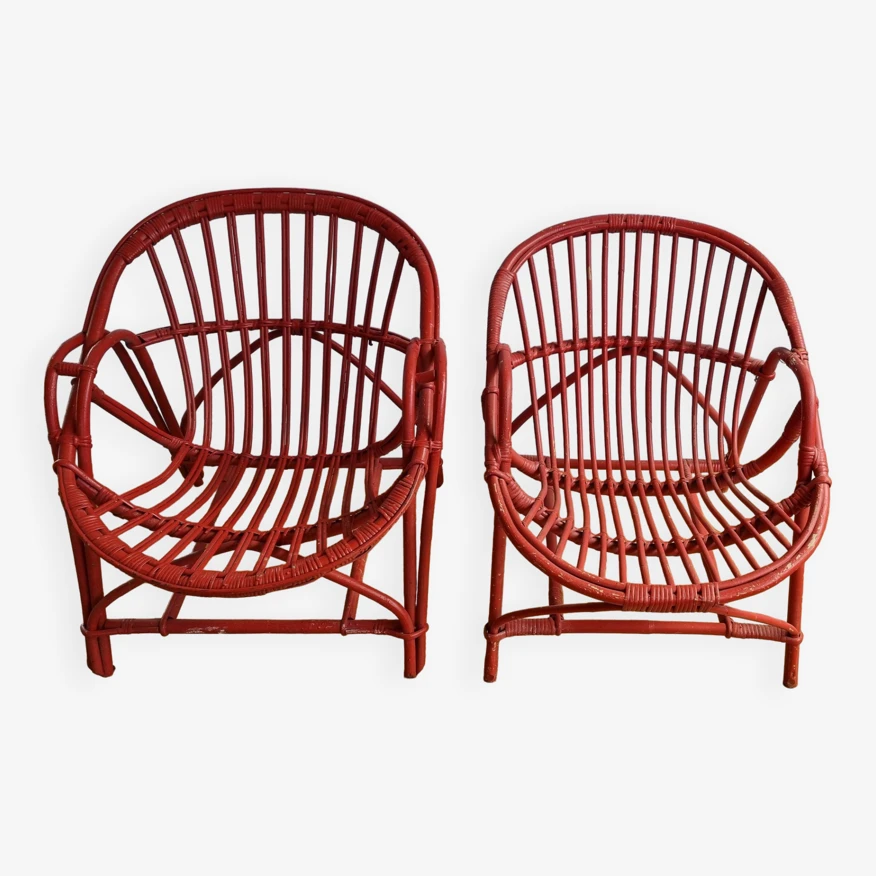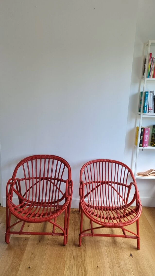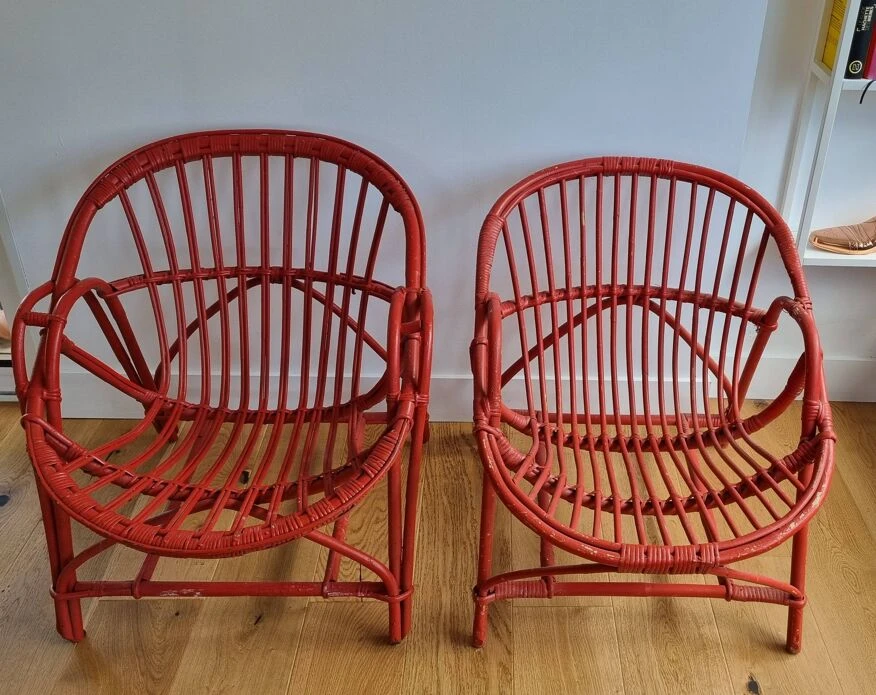 Pretty set of 2 vintage rattan shell armchairs they have been repainted…