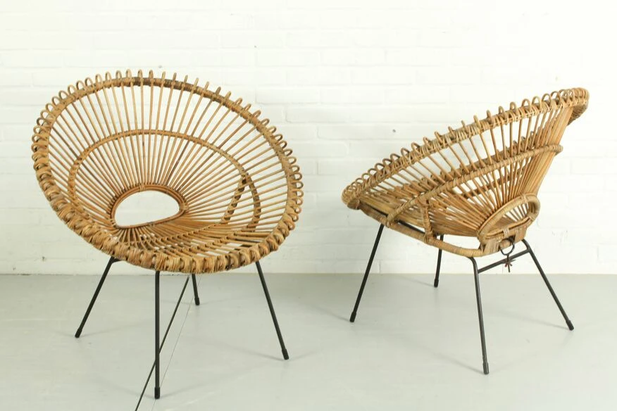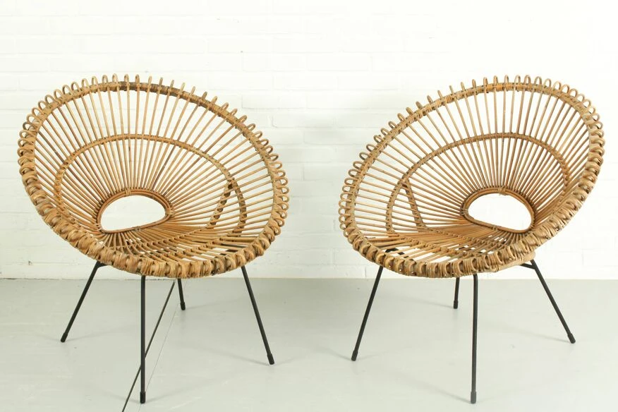 Set of 2 sunburst chairs by rohe noordwolde, 1950s.
