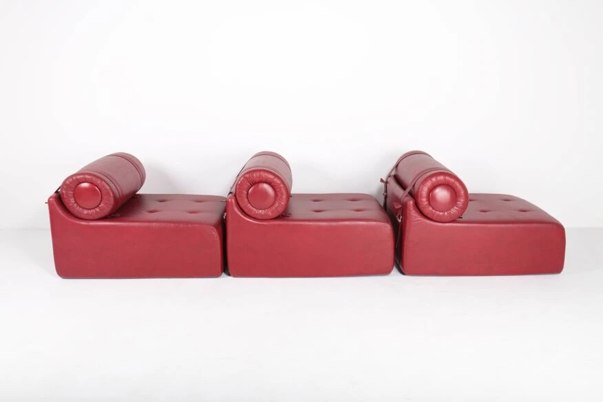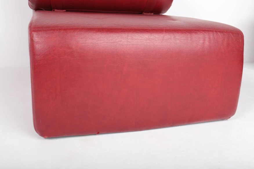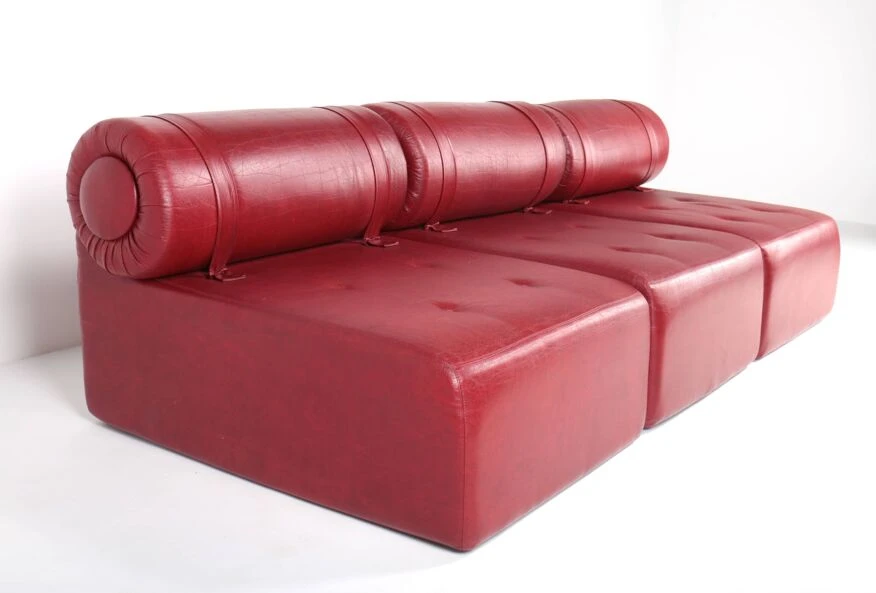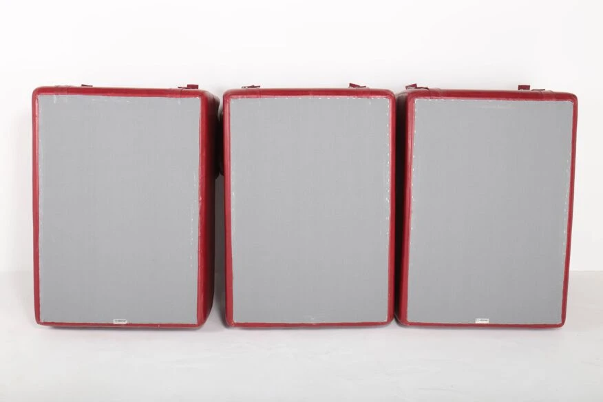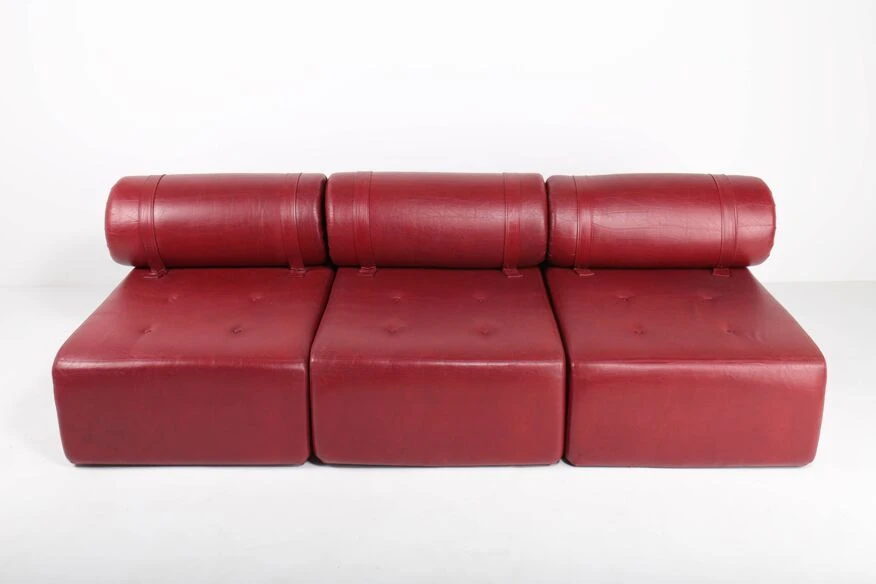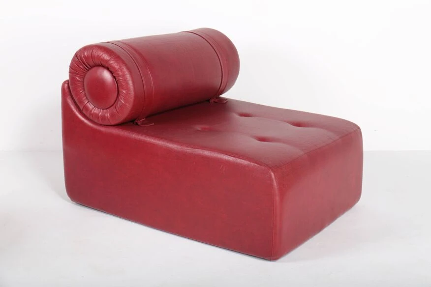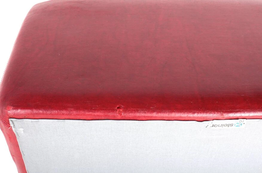Polyurethane foam blocks covered with the original burgundy red imitation leather.
