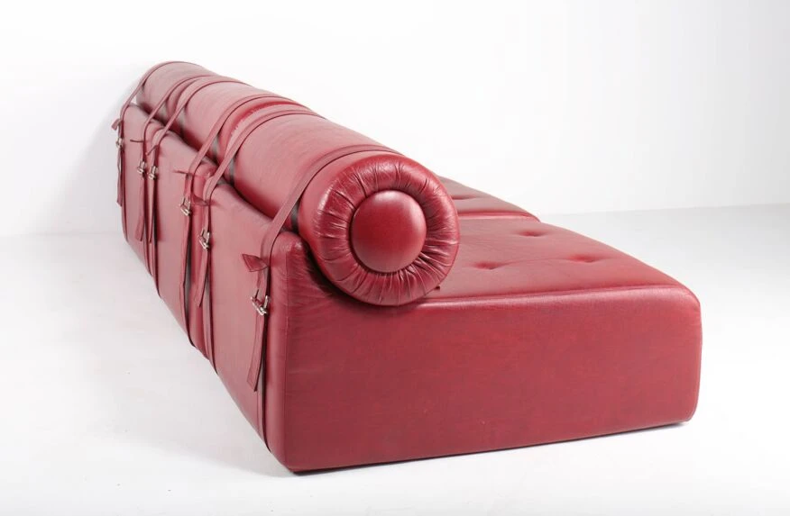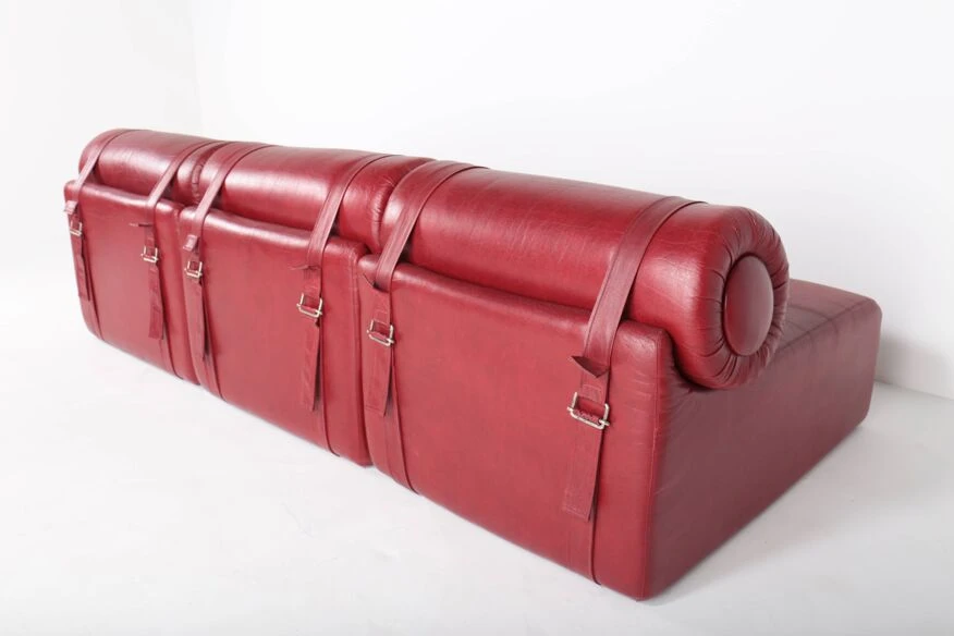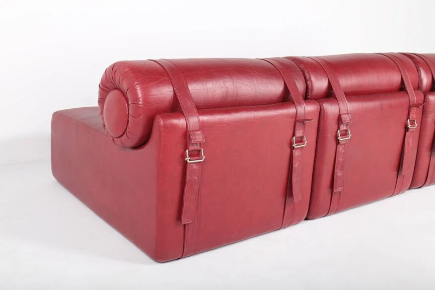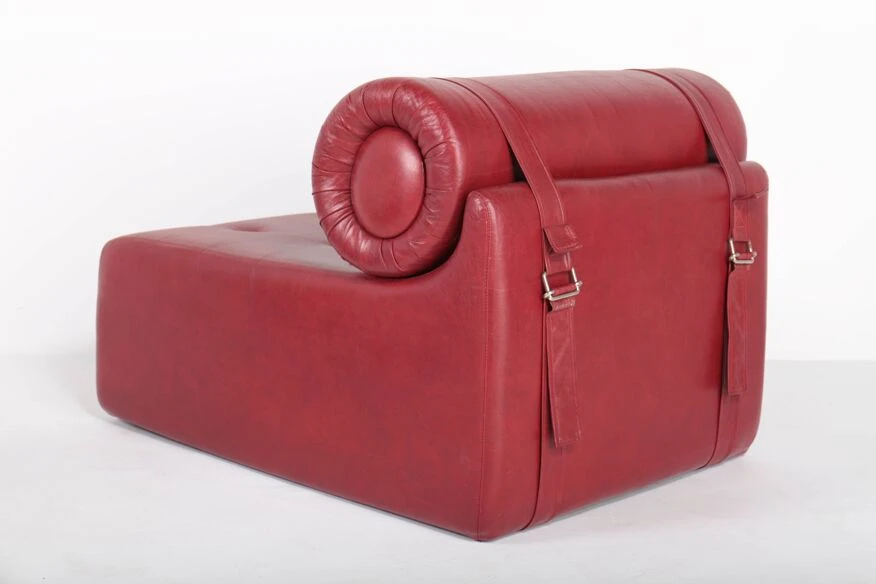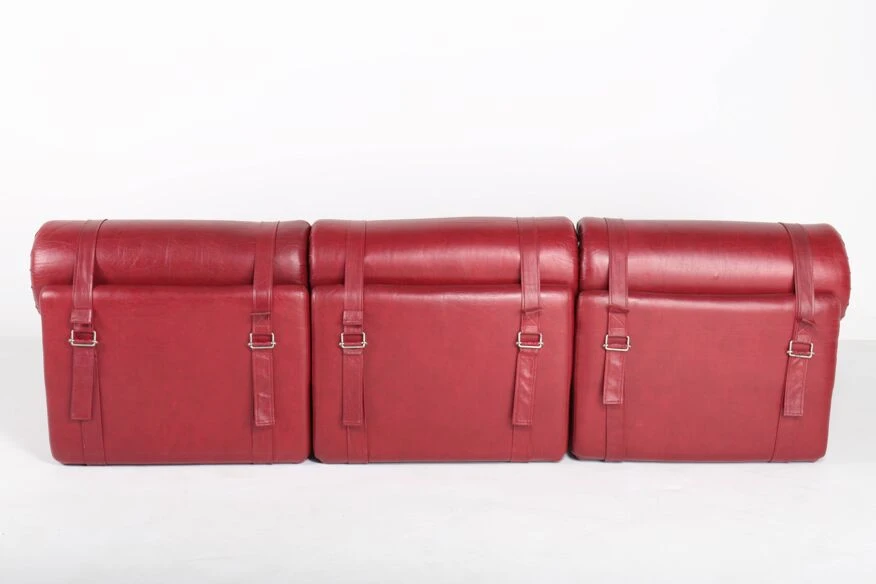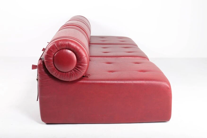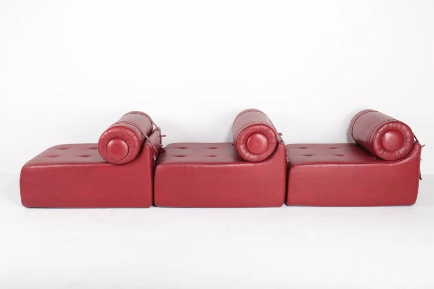 Polyurethane foam blocks covered with the original burgundy red imitation leather.