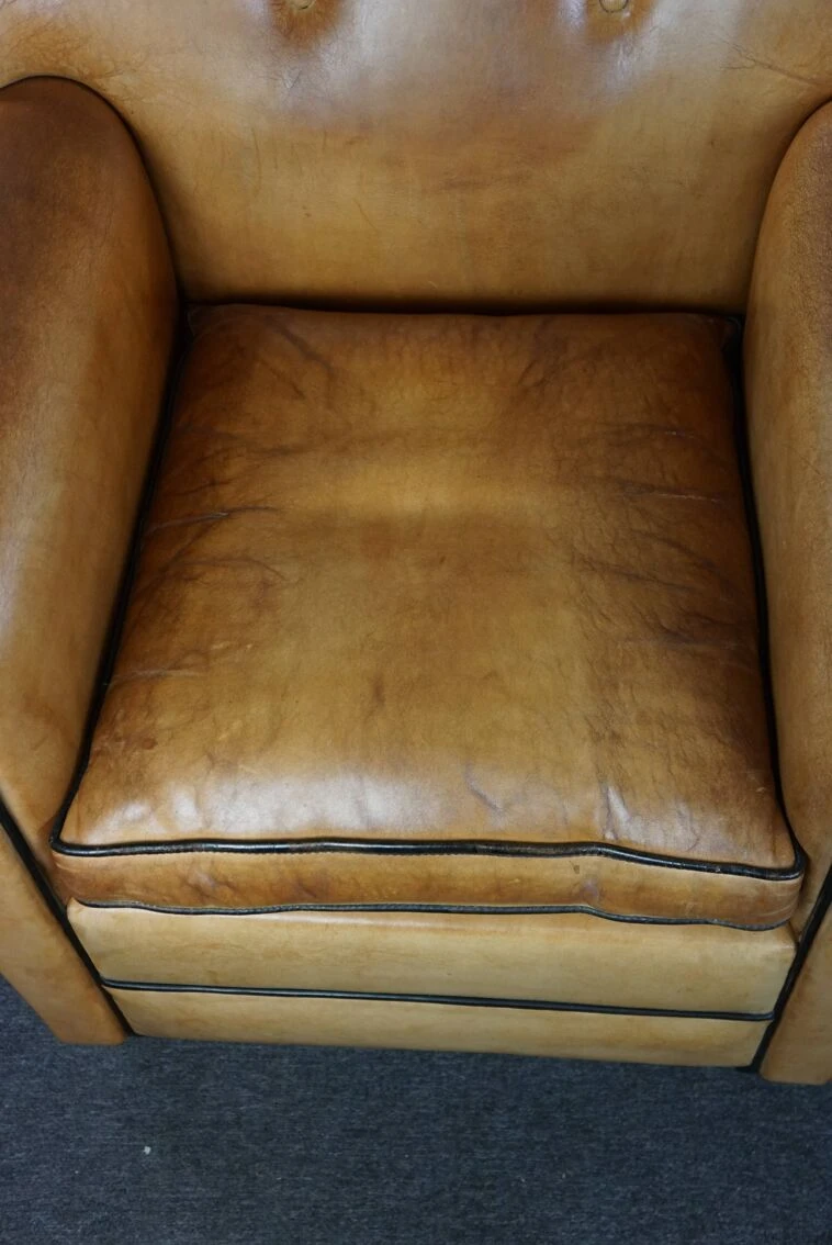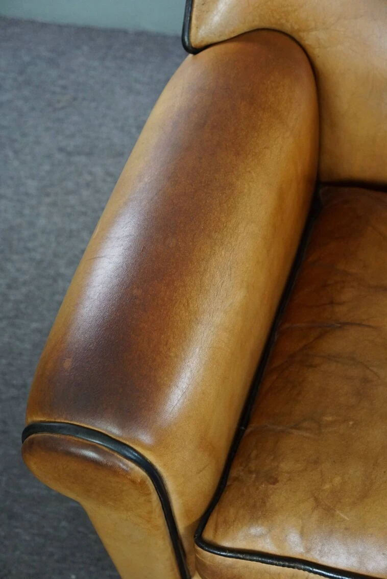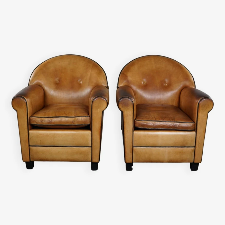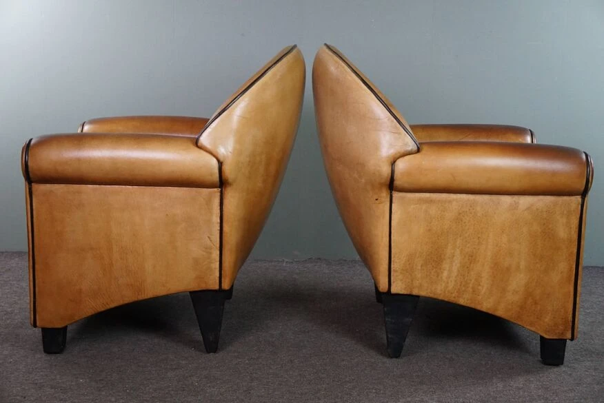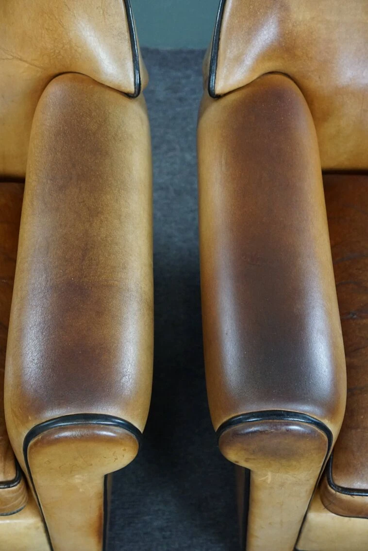 These unique and highly sought-after design armchairs by bart van bekhoven are crafted from top-quality sheep leather in a lovely warm honey color.