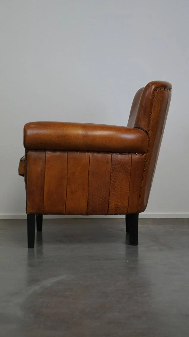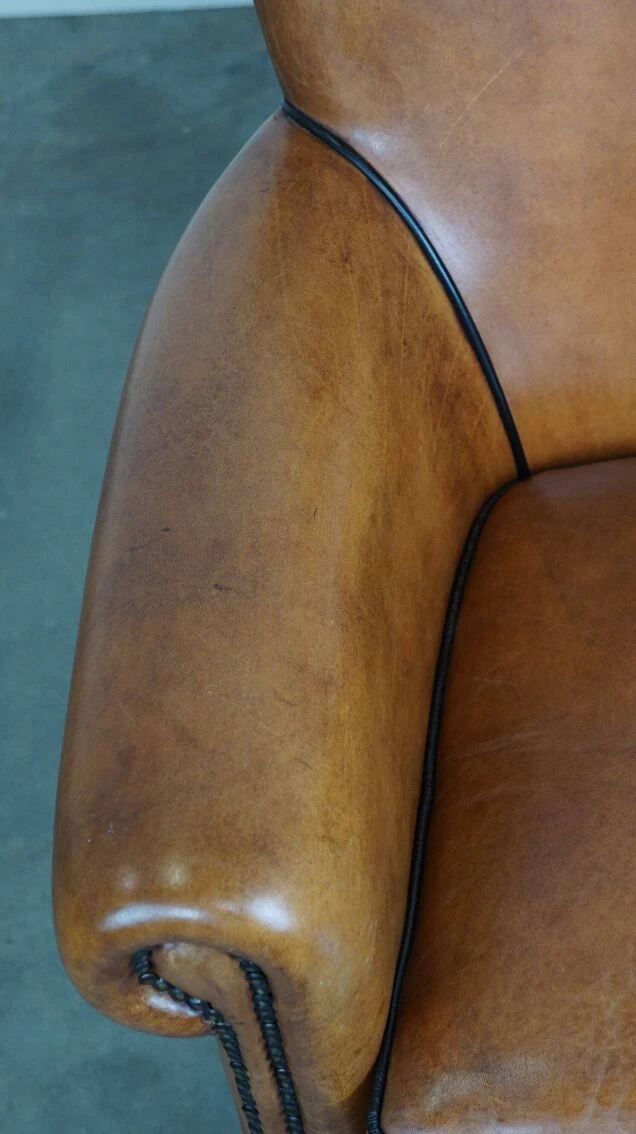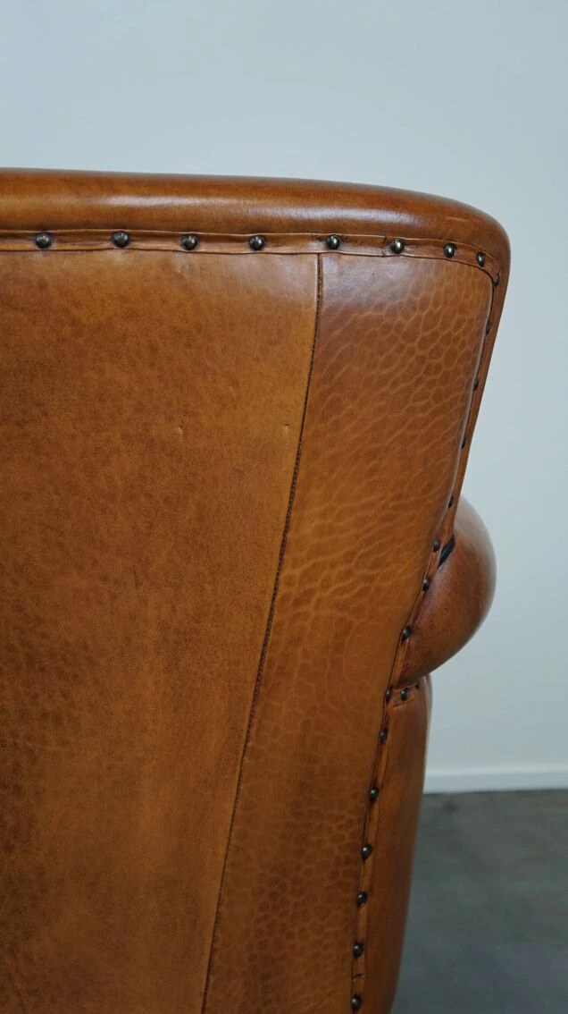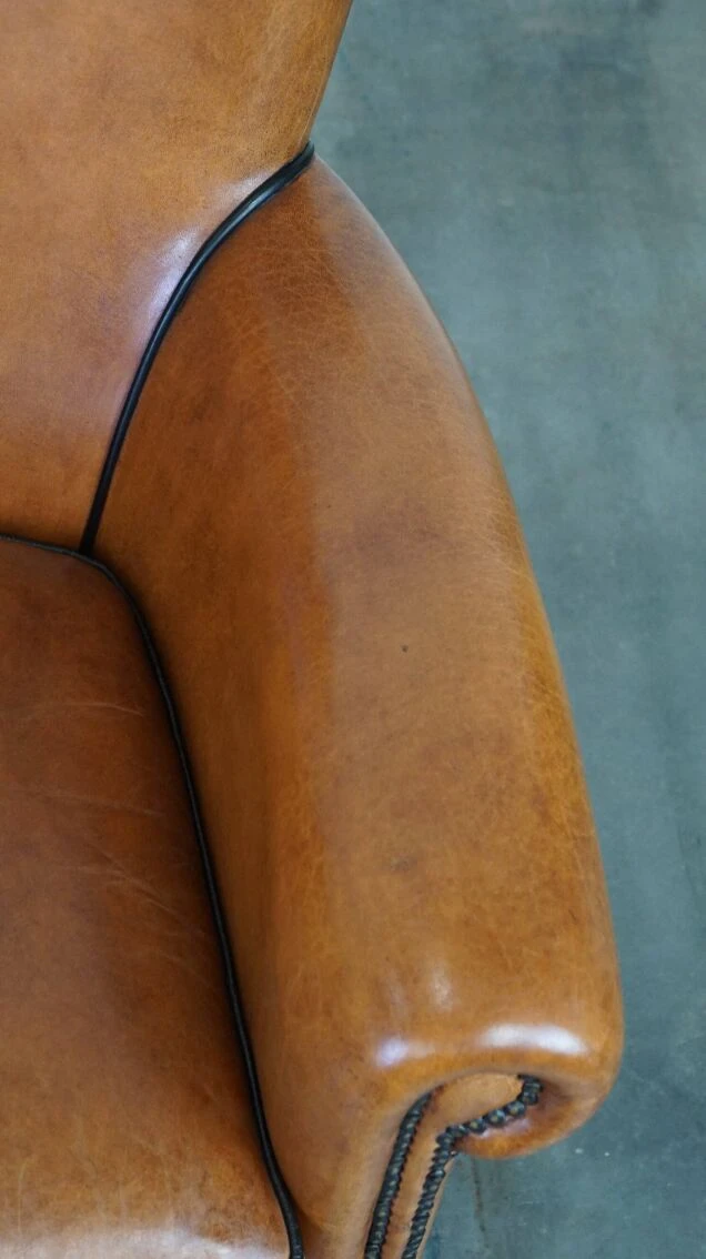 Offered: this sheepskin leather armchair in excellent condition, exuding luxury.