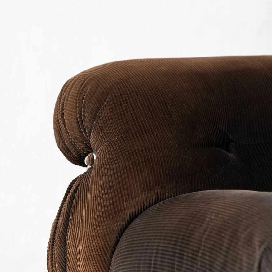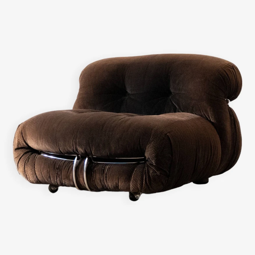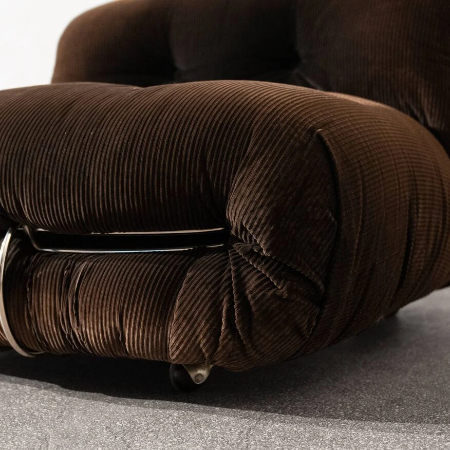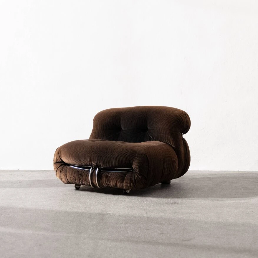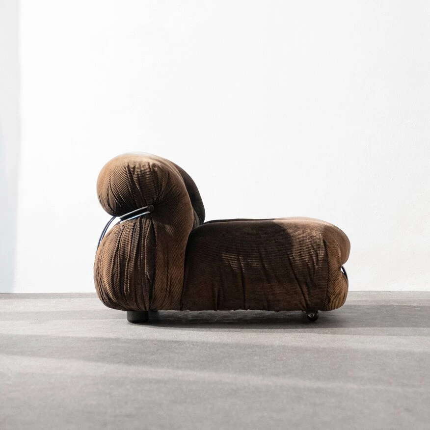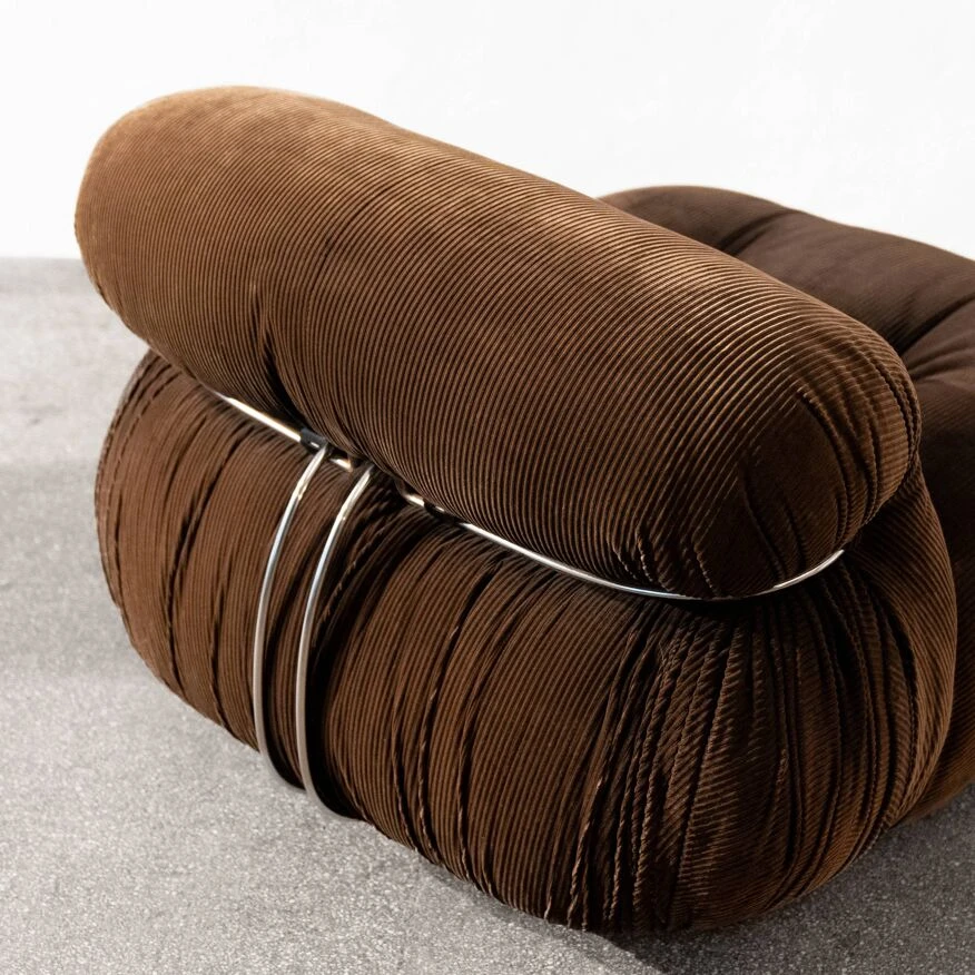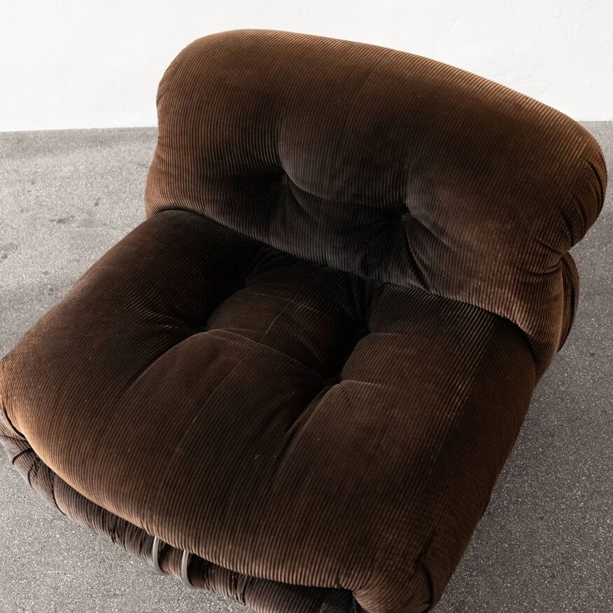 The Soriana was intended to express beauty and comfort by using a whole bundle of fabric held by a chrome-plated steel clamp. The Soriana was the first piece in the series and won the Compasso D’oro for its design in 1969. The armchair still has the original cord cover with a unique patina that has developed over the last 50 years.