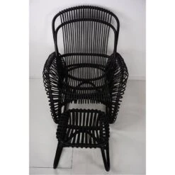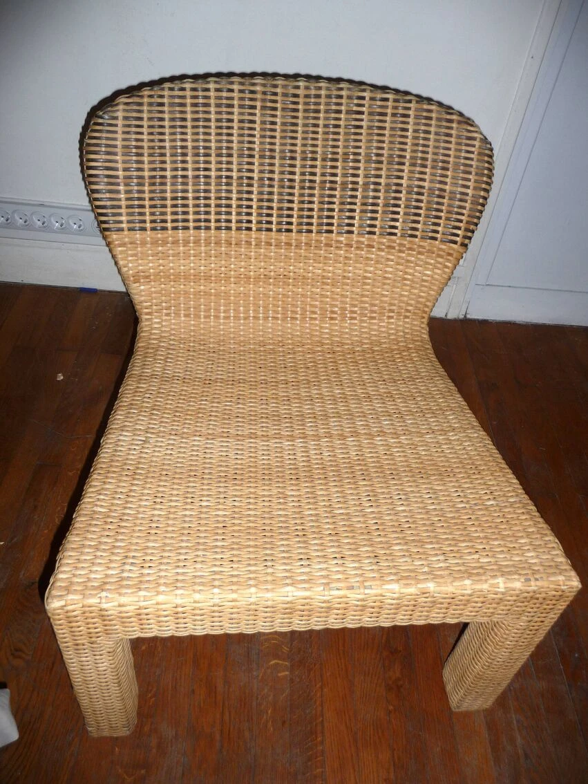 Made of peeled rattan (anthracite details) with wood, fairly large shape.