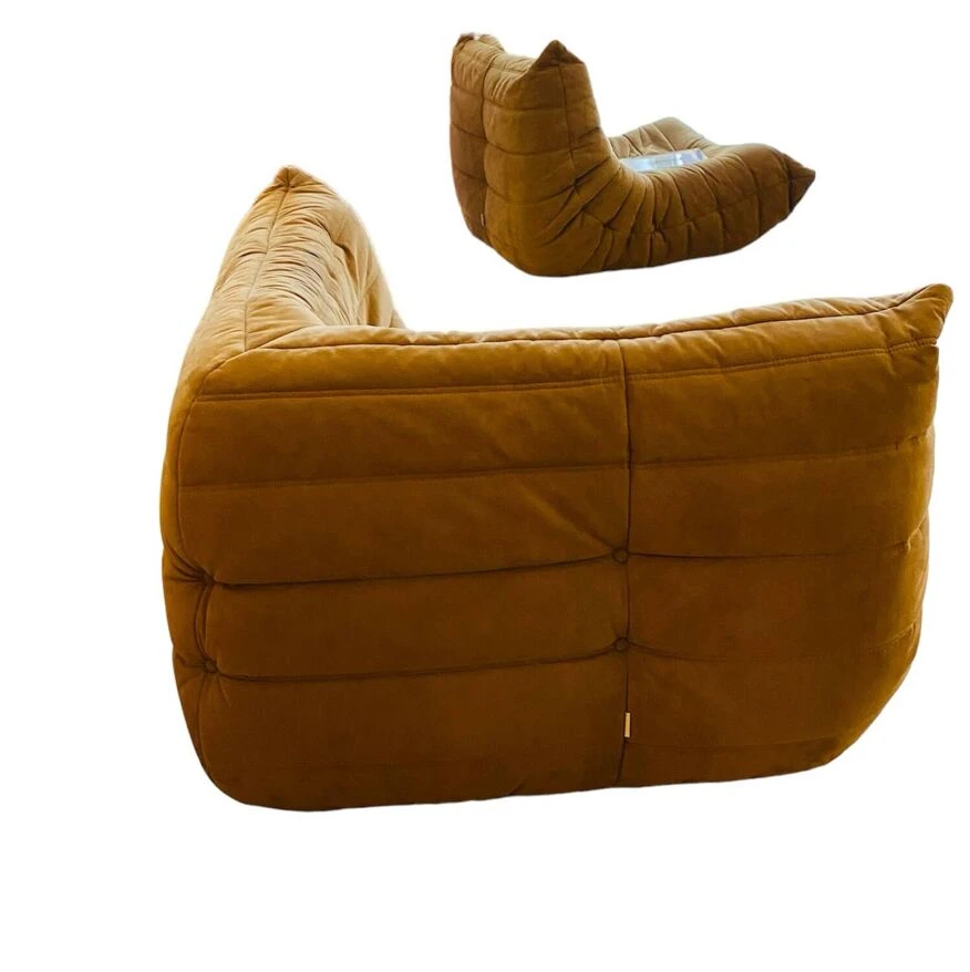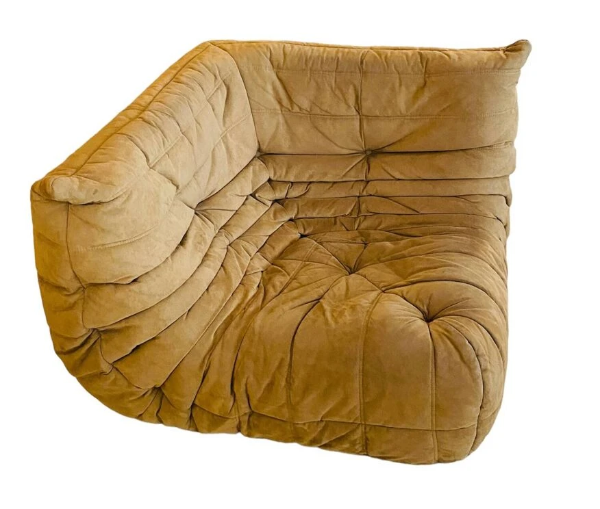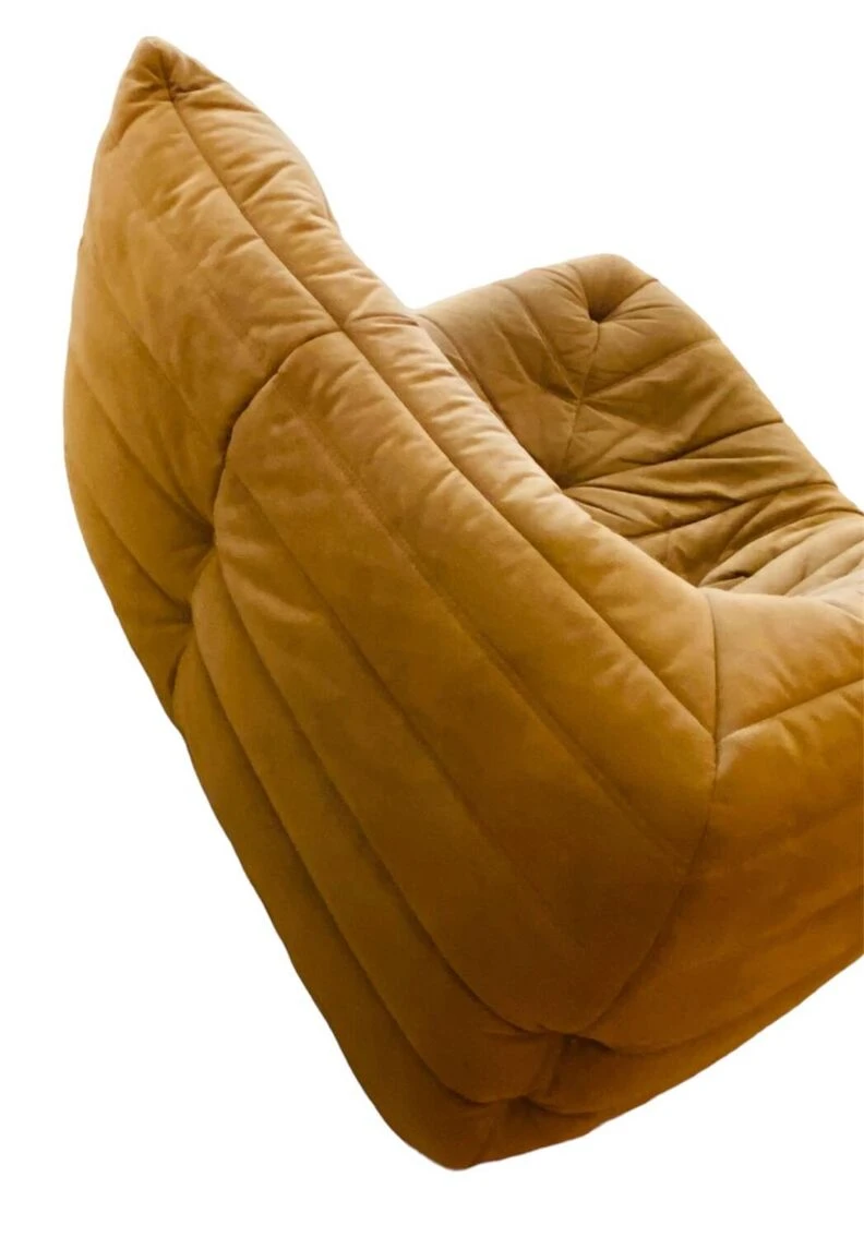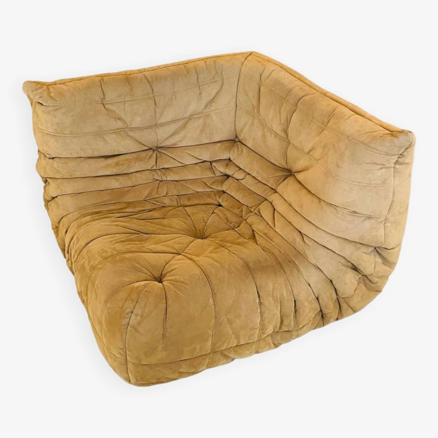 Togo corner chair by Michel Ducaroy for Ligne Rosee dating from the 90s. Brown Alcantara. Having used very little and in almost new condition. See photos for details. This corner is part of a larger set made up of two other armchairs and an ottoman and footrest. Possibility of selling the lot.