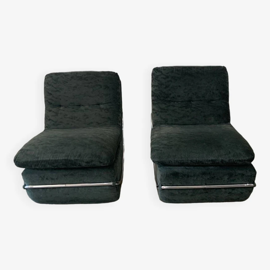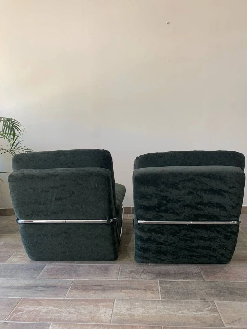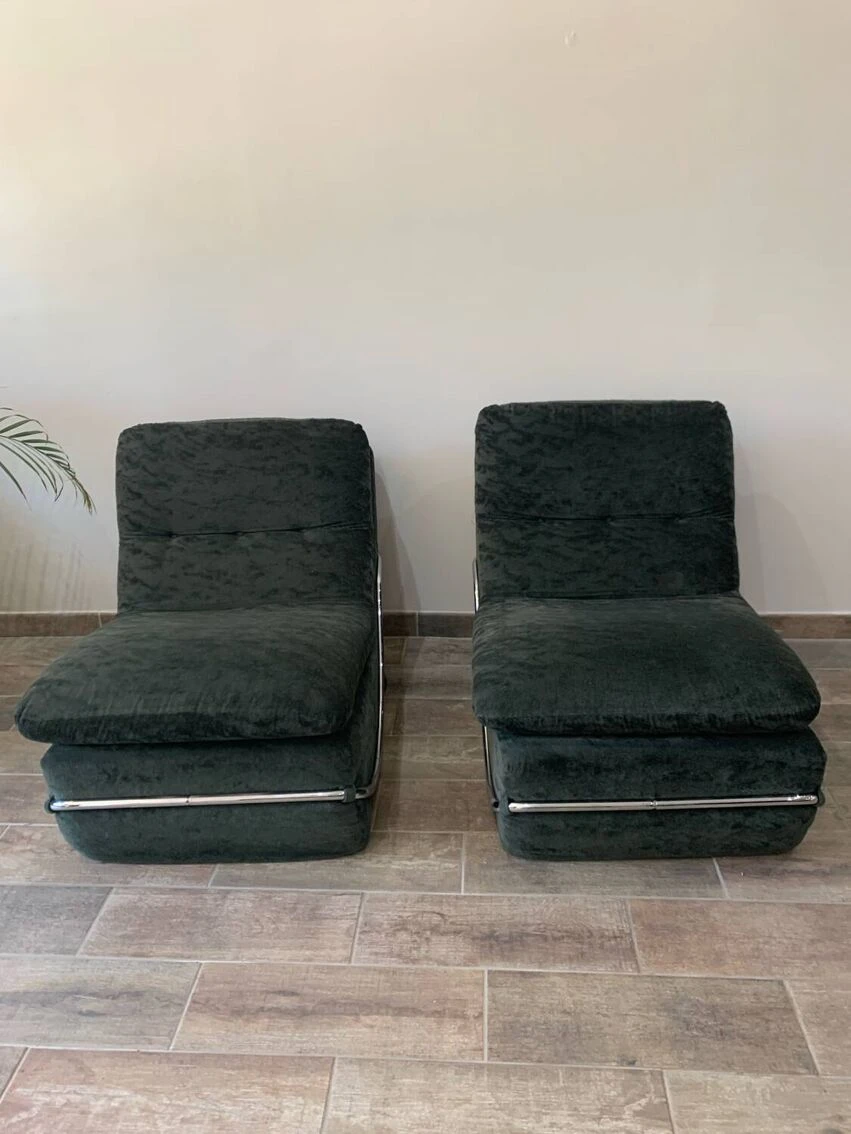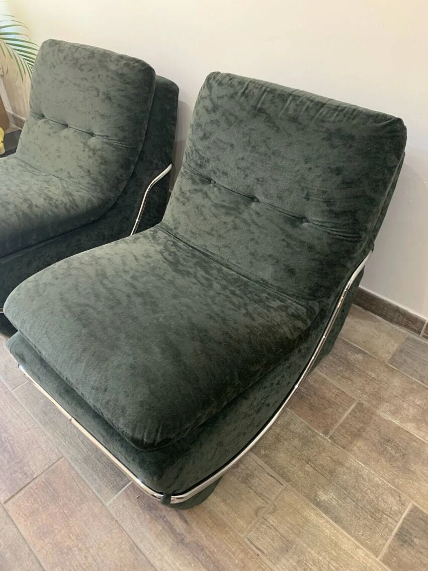 Set of 2 vintage 70s low chairs in green velvet made in italy.