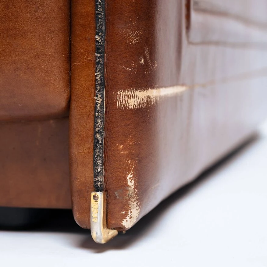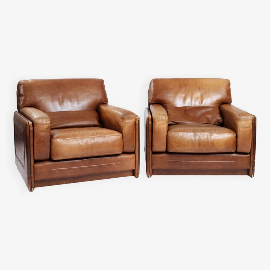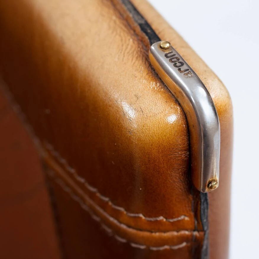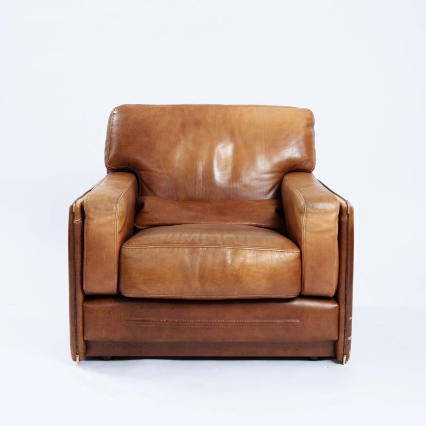 Vintage buffalo leather designer cognac easy chair / lounge chair, design by marco milisich for baxter arcon, italy 1970s.